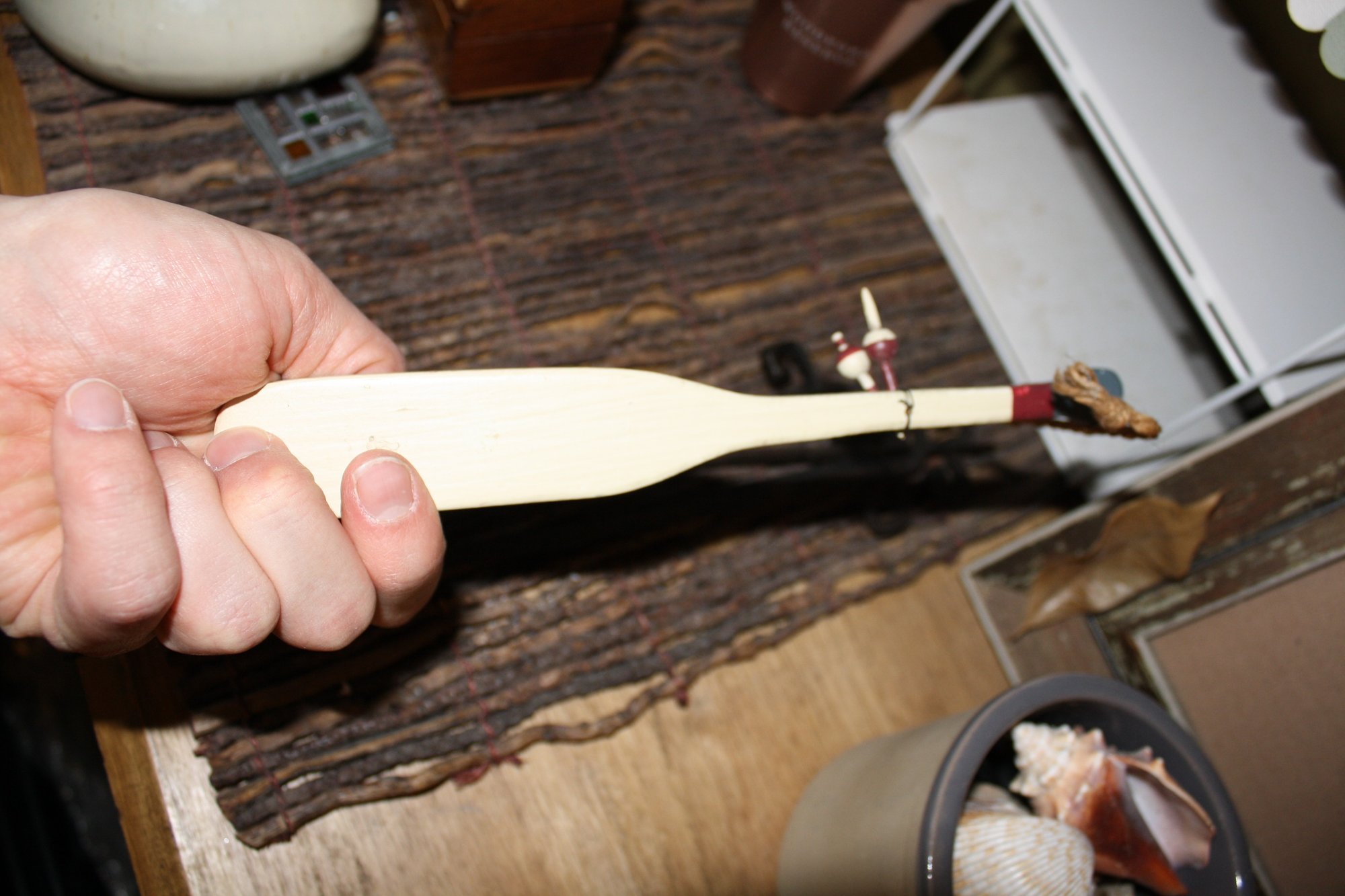 Decorative miniature wooden oar designed as a Christmas ornament or wall hanging. Features a handcrafted wooden finish with a classic oar shape suitable for holiday décor or nautical-themed displays. Lightweight and versatile for hanging on trees, walls, or as part of seasonal tabletop arrangements.