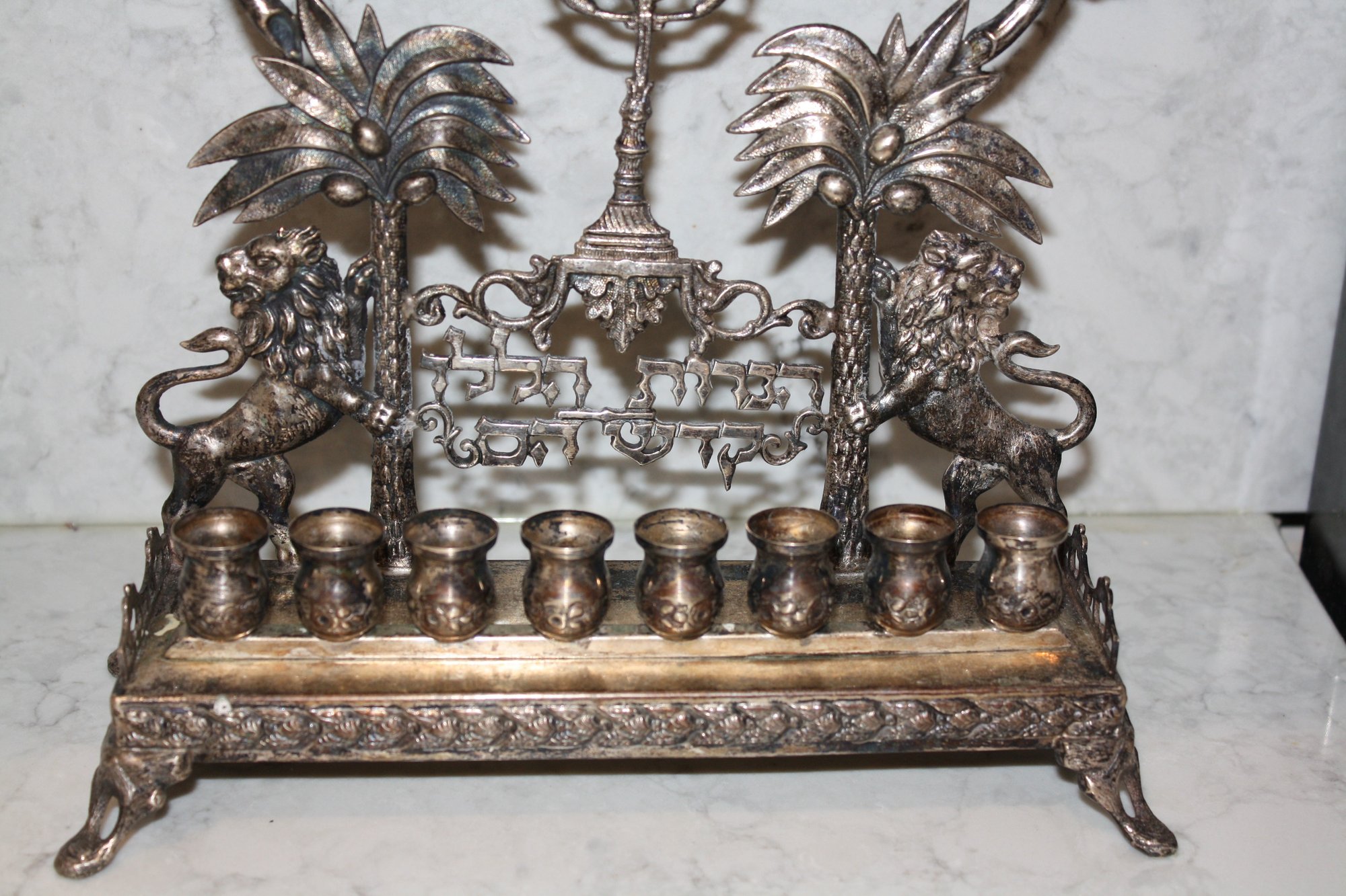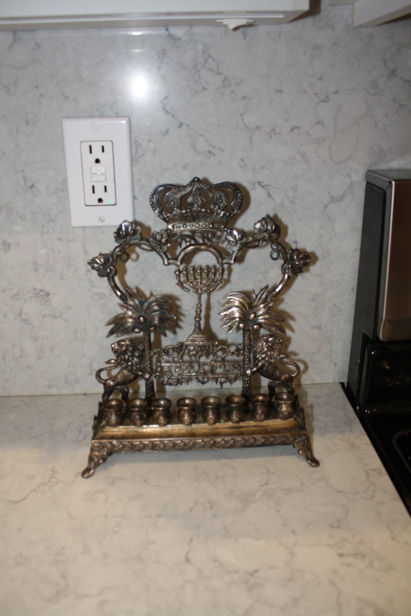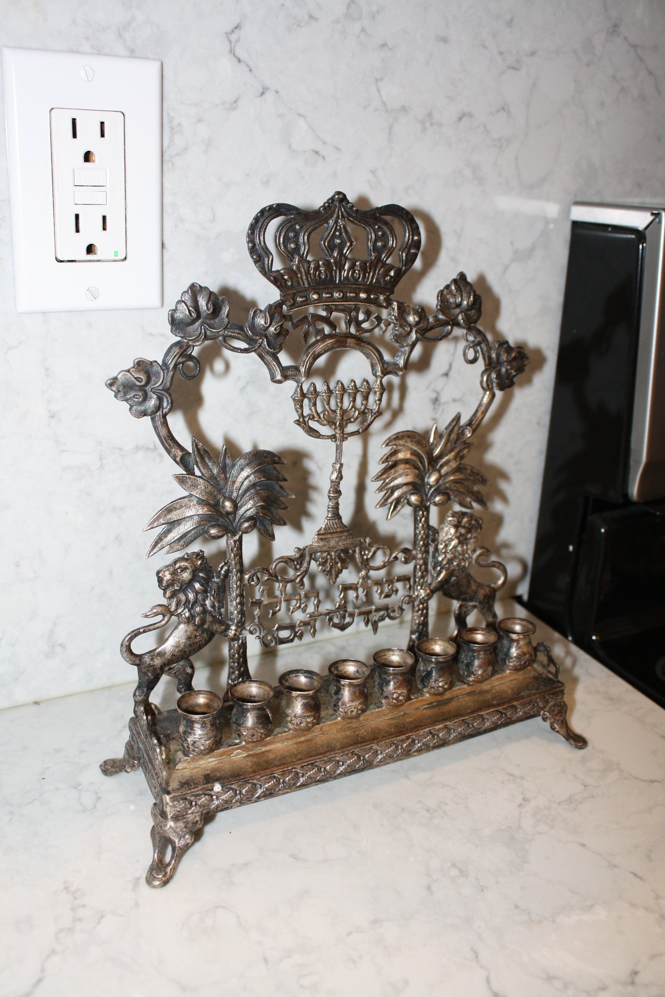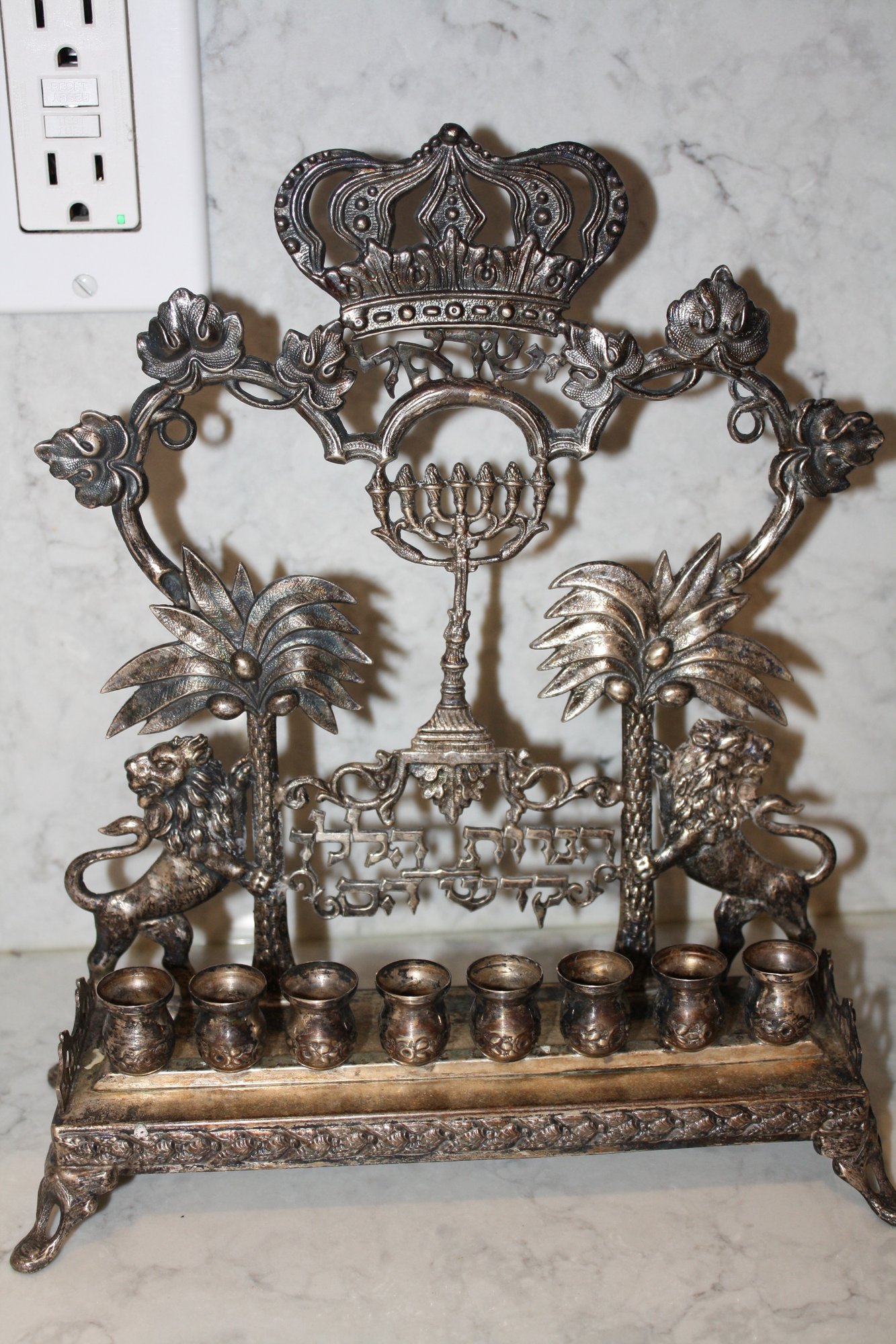 An 11-inch tall Possible Silver Ornate Hanukkah Menorah