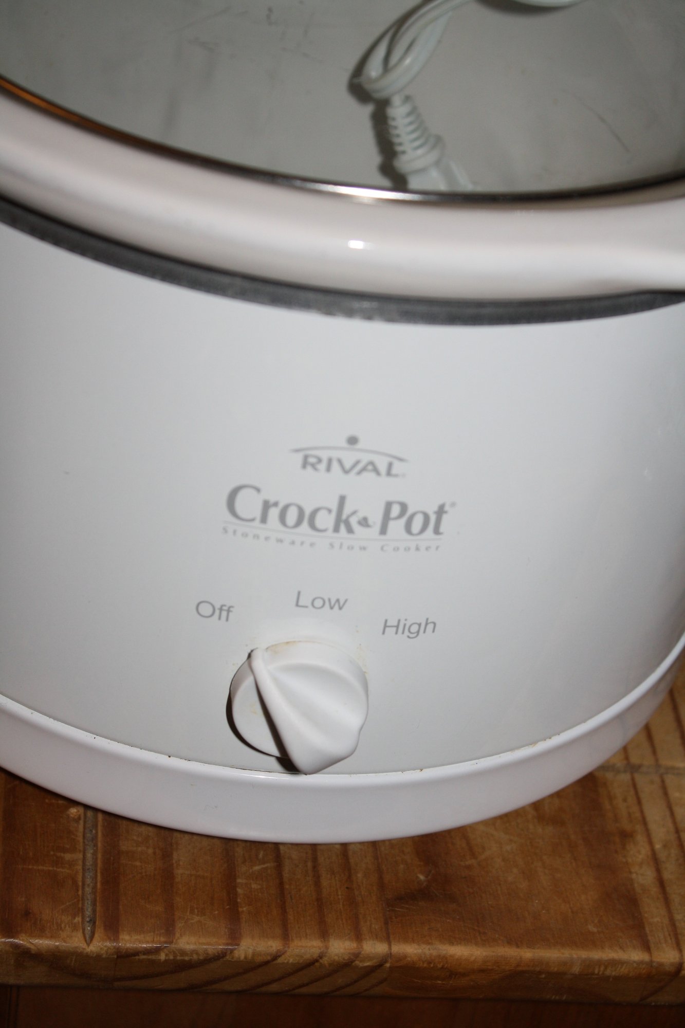 Rival 4-quart manual slow cooker with removable stoneware pot and simple dial knob offering “Off,” “Low,” and “High” settings. Ideal for simmering meals over extended periods to enhance flavor and tenderness. Durable and easy-to-use, perfect for soups, stews, and other slow-cooked dishes.