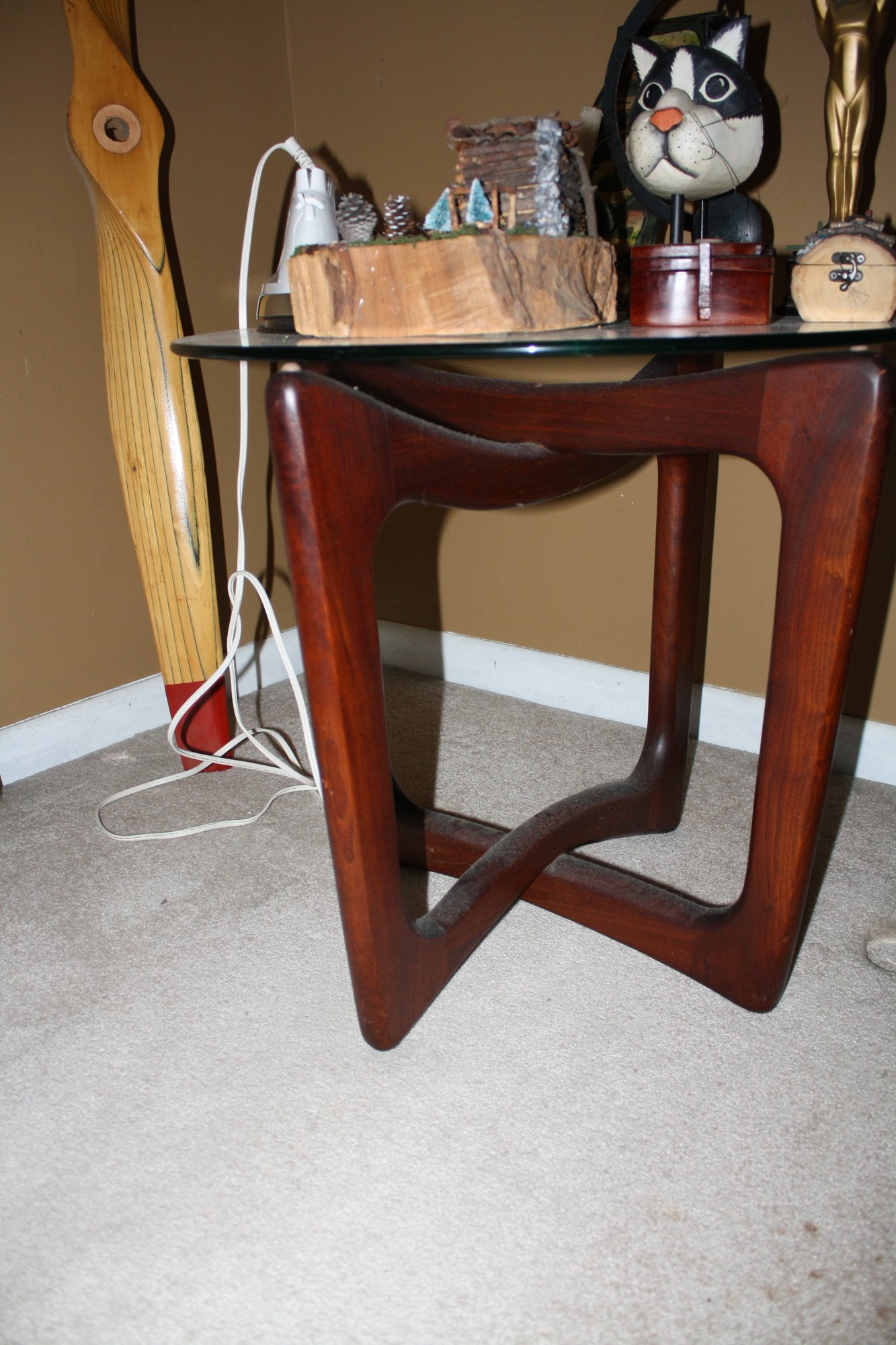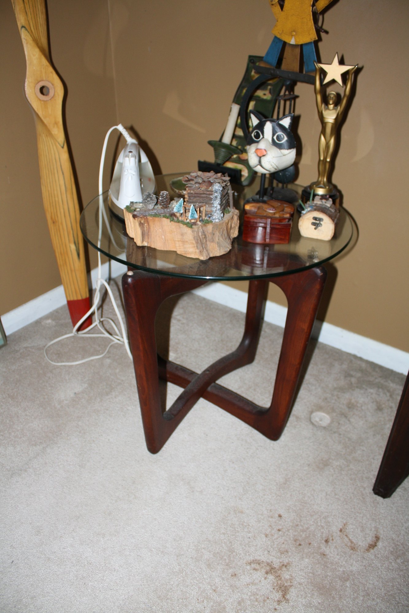Round accent side table featuring a clear glass top supported by a wooden base. The design offers a clean modern look suitable for living rooms, sitting areas, or bedroom spaces. The glass surface provides a light, open feel while the wooden base adds stability and contrast. Approximate dimensions: 26" diameter x 21" H.