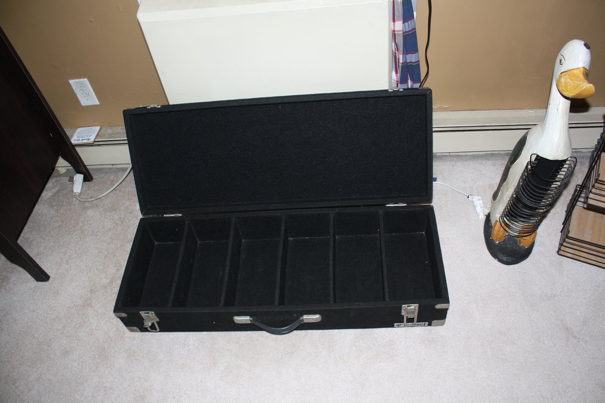 This Grundorf storage case features six compartments and a sleek black design, ideal for organizing tools, craft supplies, or small household items. Durable and functional, it helps keep spaces neat and items easily accessible.