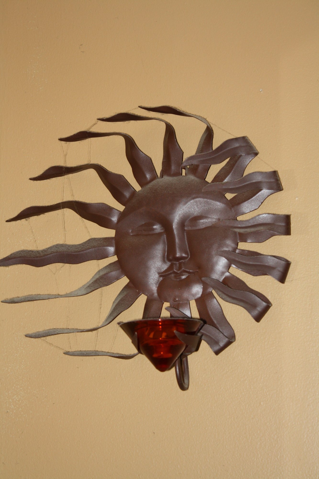 This metal sun wall art sculpture features a rustic, distressed finish, making it ideal for southwestern or farmhouse-style décor. Designed to add a warm, artistic focal point to any living space, patio, or entryway.