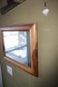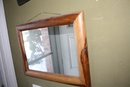 Decorative wall mirror framed with a thick, natural wood border measuring approximately 21" wide. Designed in a rustic style, this mirror adds warmth and farmhouse charm to living rooms, bedrooms, or entryways.