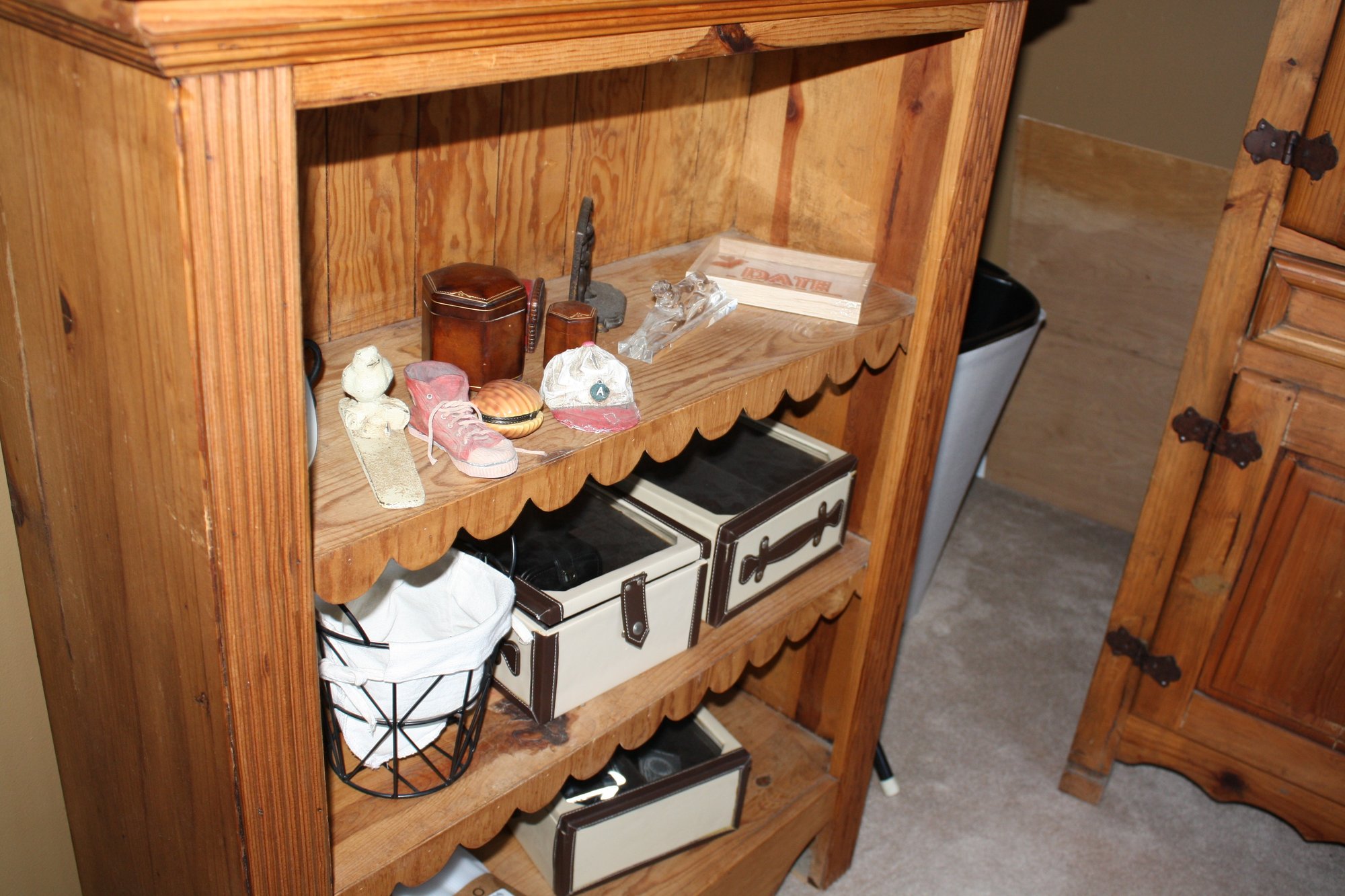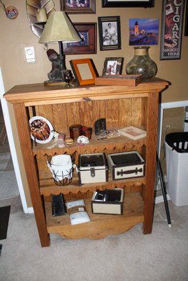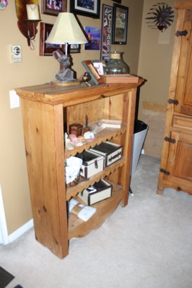 This rustic wooden bookshelf features a light rye finish and fixed shelves, perfect for storage and display of books, decor, or collectibles. It measures 40" wide, 13" deep, and 49" high, offering a compact yet functional design ideal for living rooms, bedrooms, or offices.