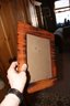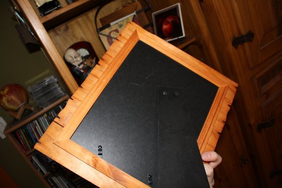 Decorative wooden picture frame with a rustic brown finish, suitable for wall display or tabletop use. Features rotatable locking tabs on the backboard to securely hold photos and backing material. Often found in antique shops or thrift stores, this frame may be vintage or handcrafted, adding charm and warmth to any home décor setting.