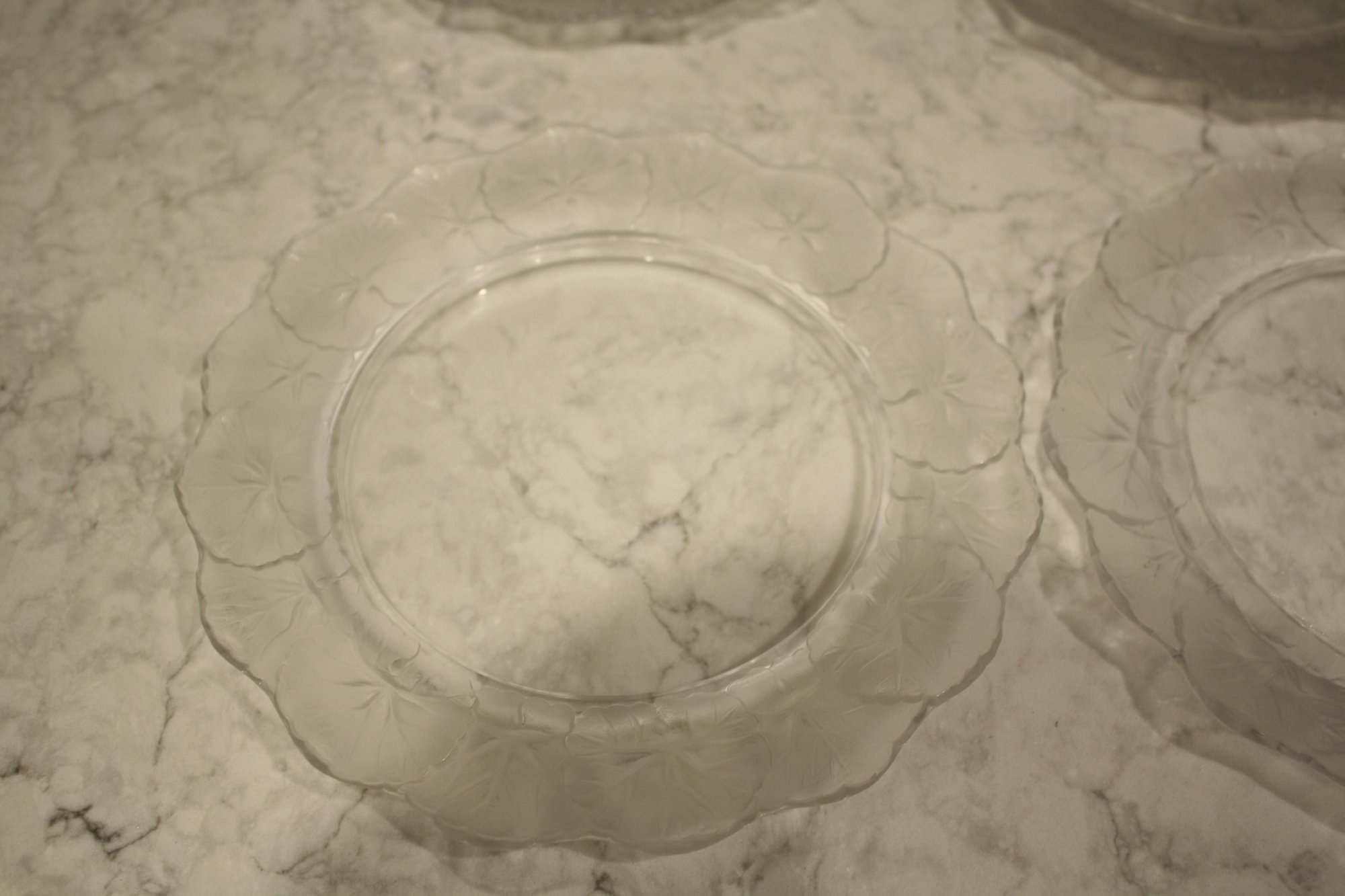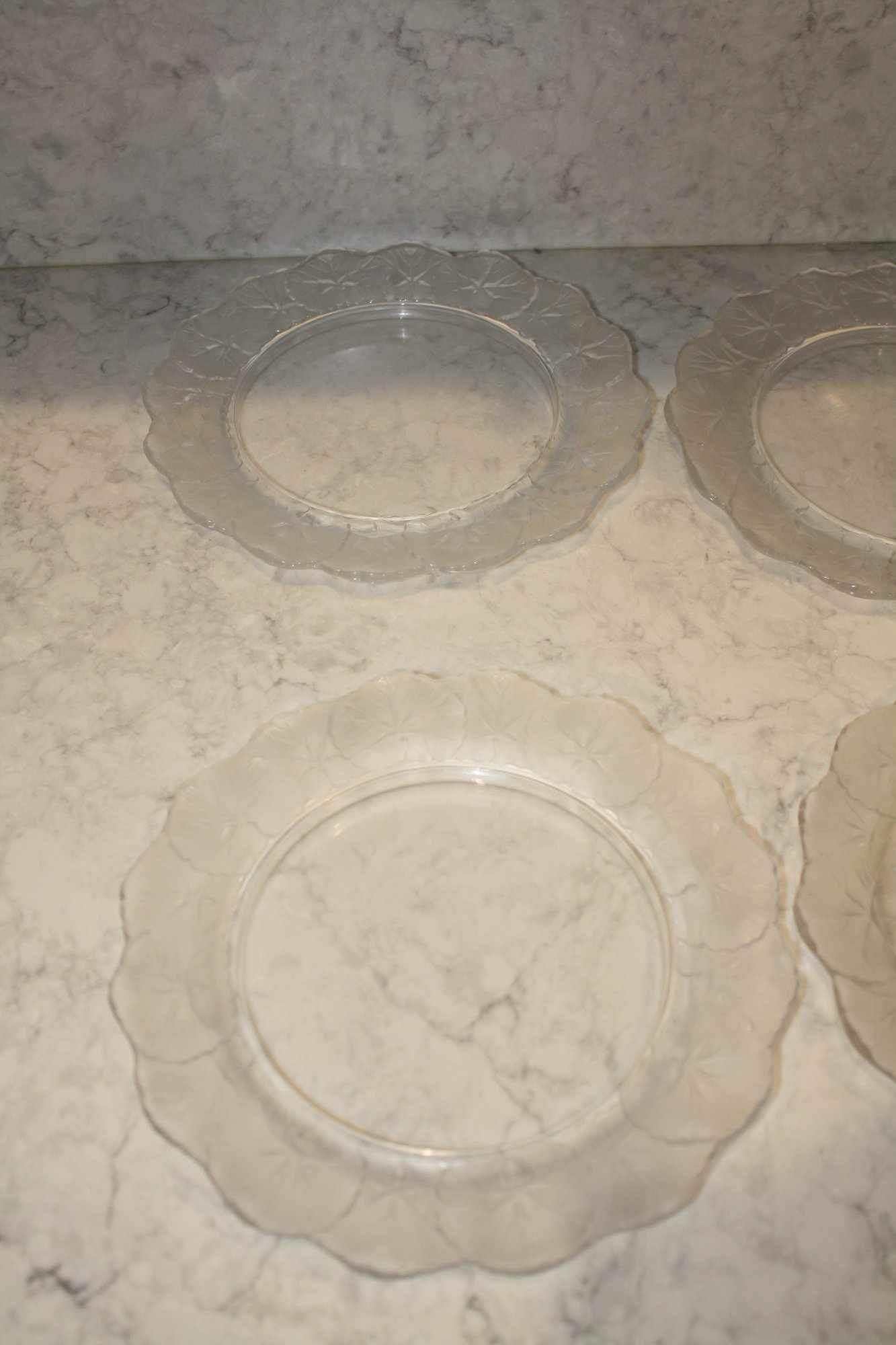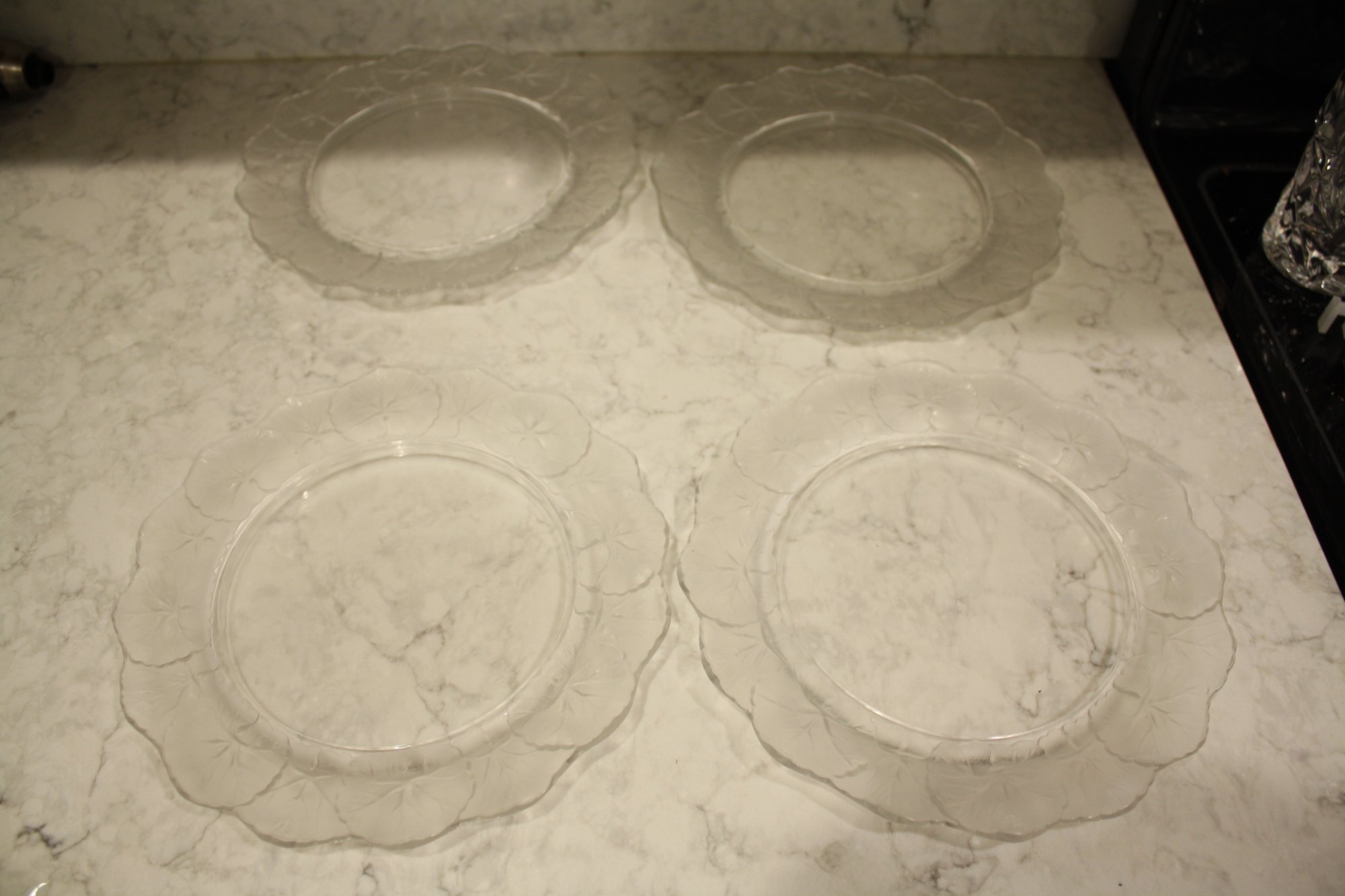set of 4 Lalique Honfleur Crystal Plates Set (Geranium Leaf Border) #1