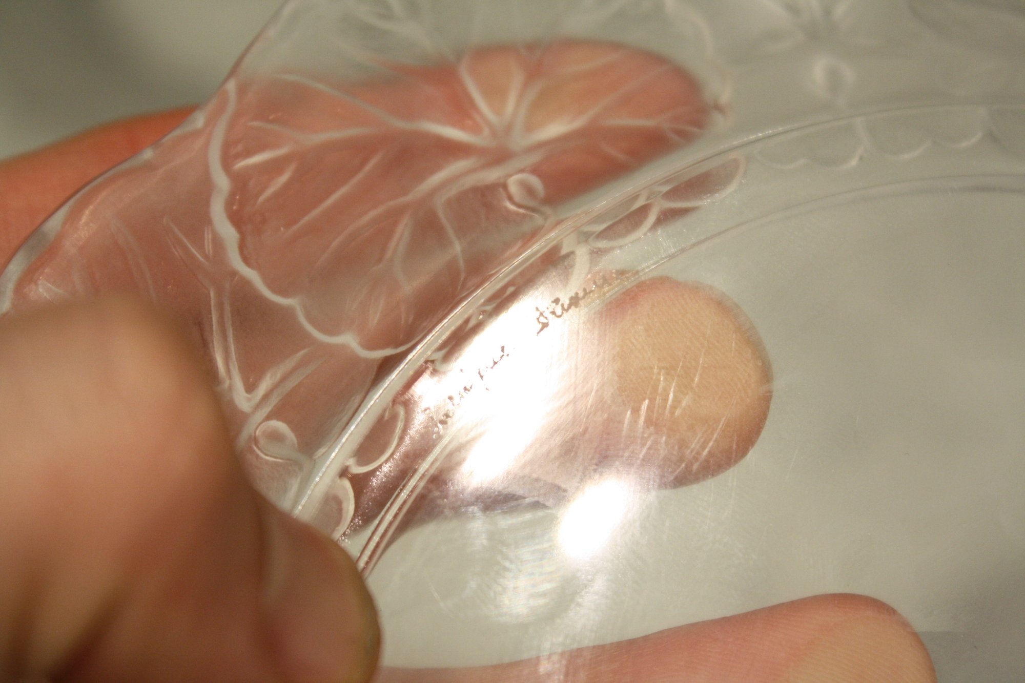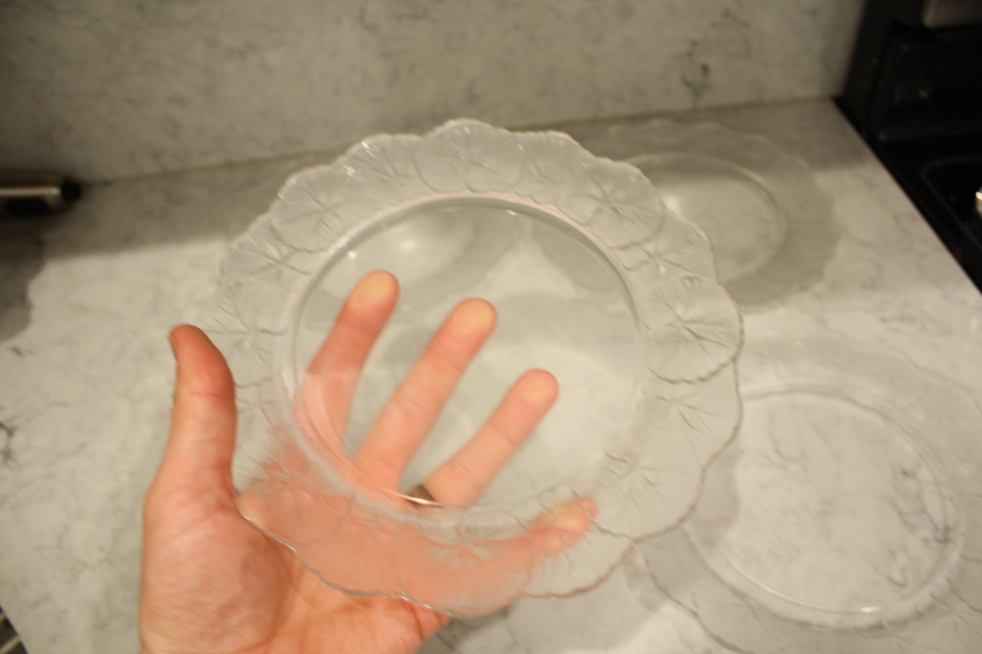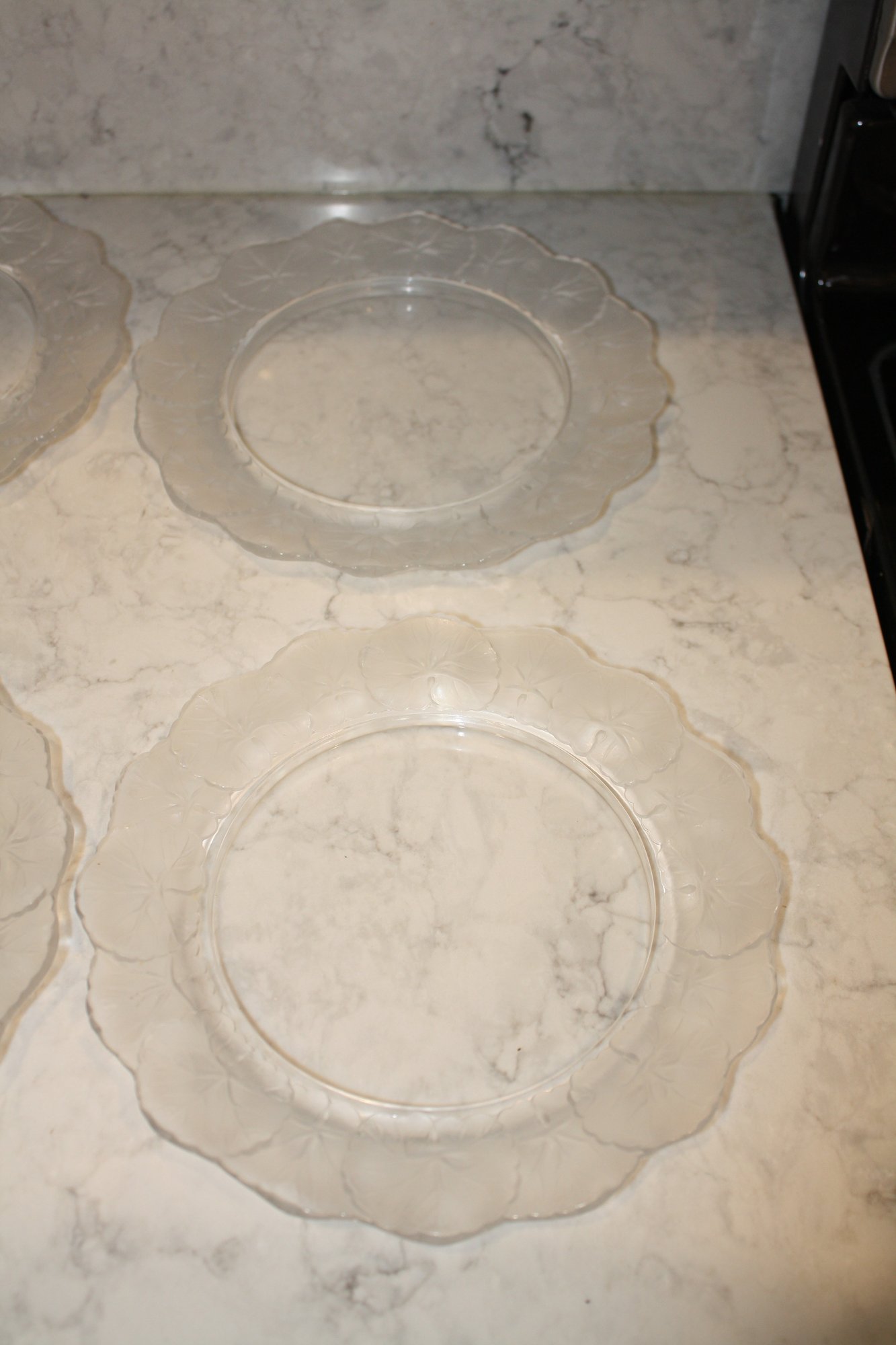 set of 4 Lalique Honfleur Crystal Plates Set (Geranium Leaf Border) #1