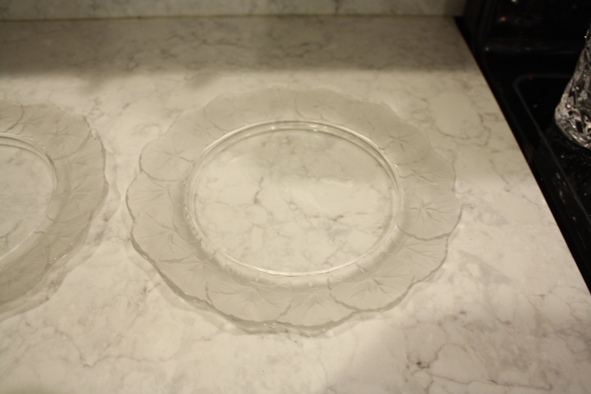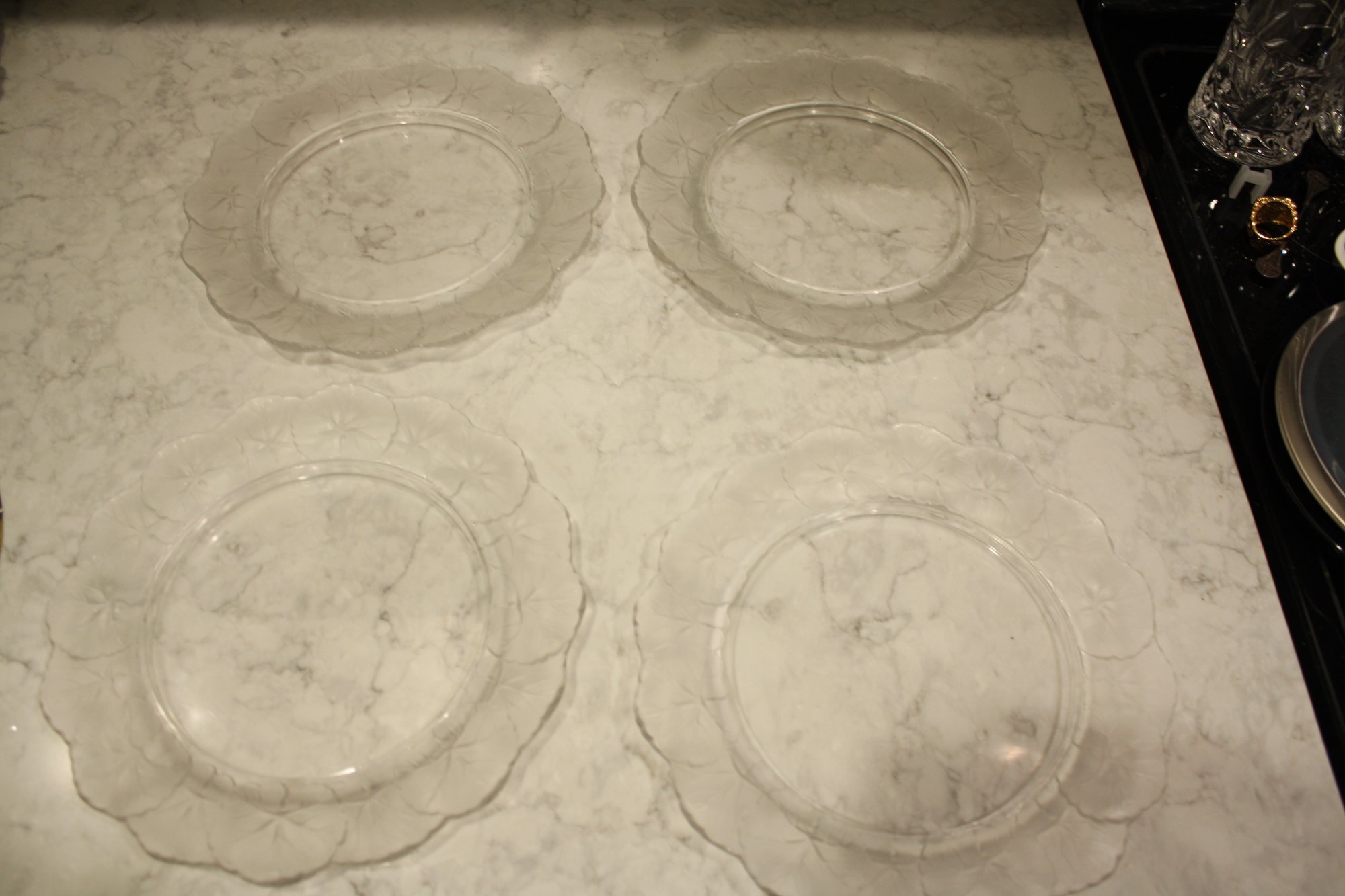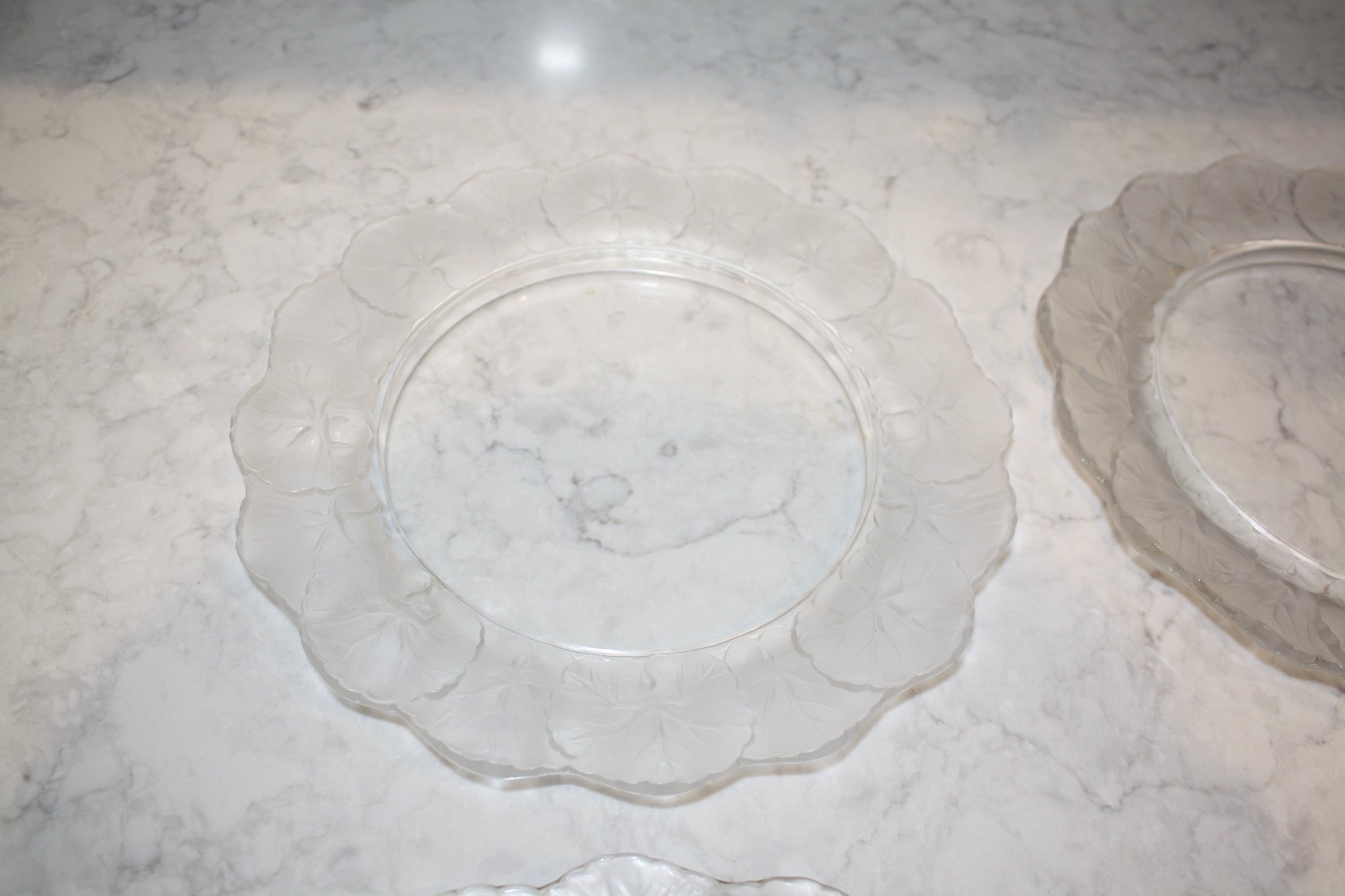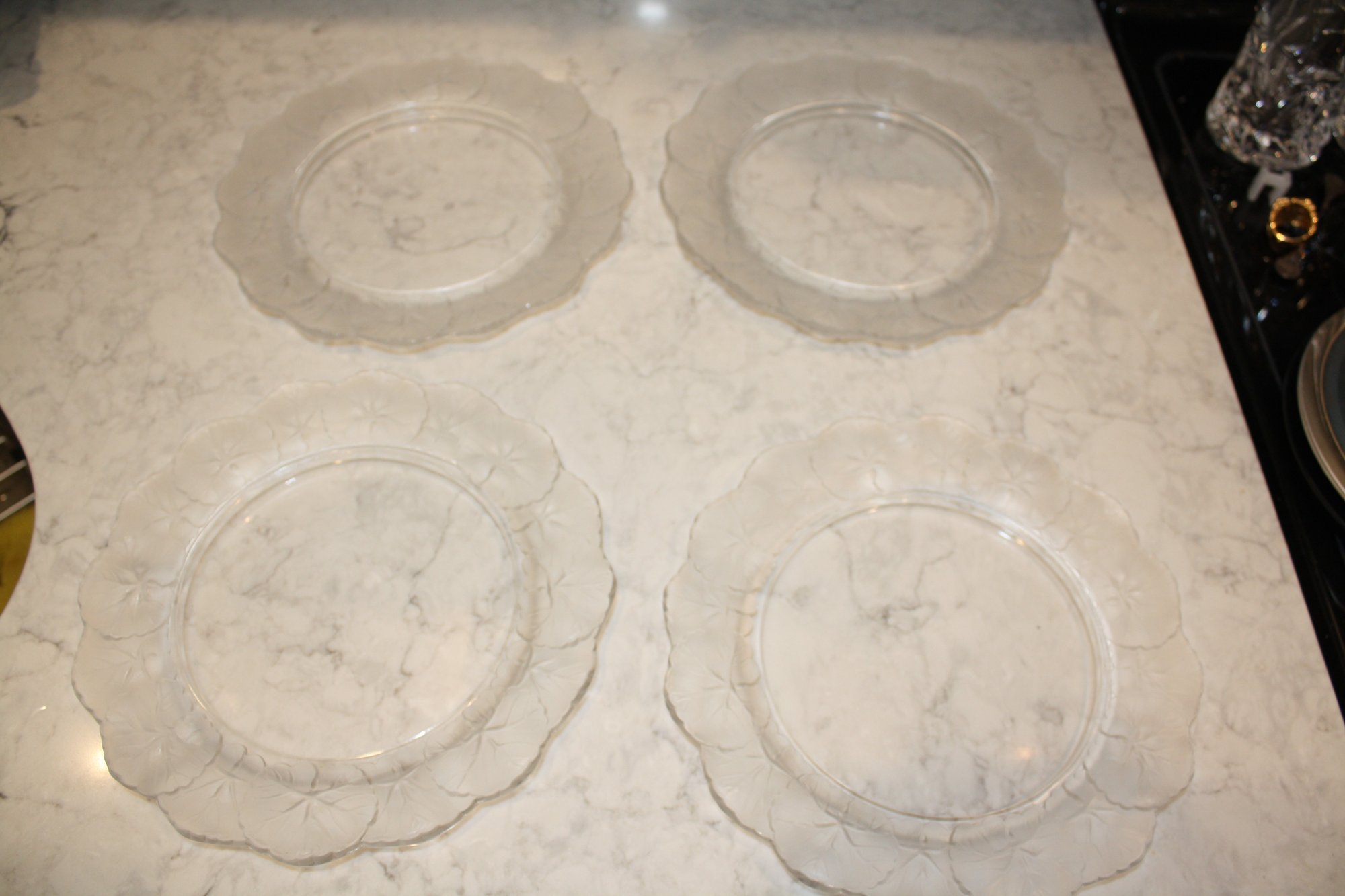 set of 4 Lalique Honfleur Crystal Plates Set (Geranium Leaf Border) #2 9 inches