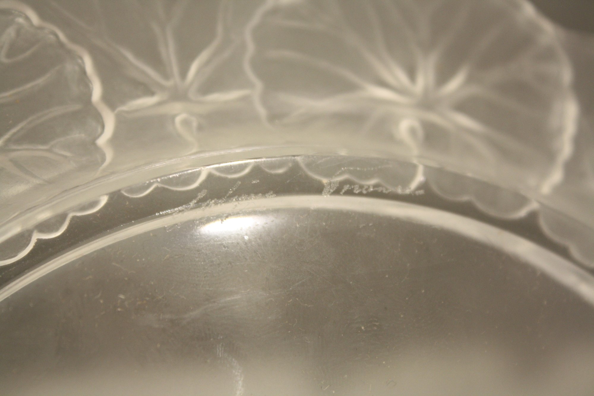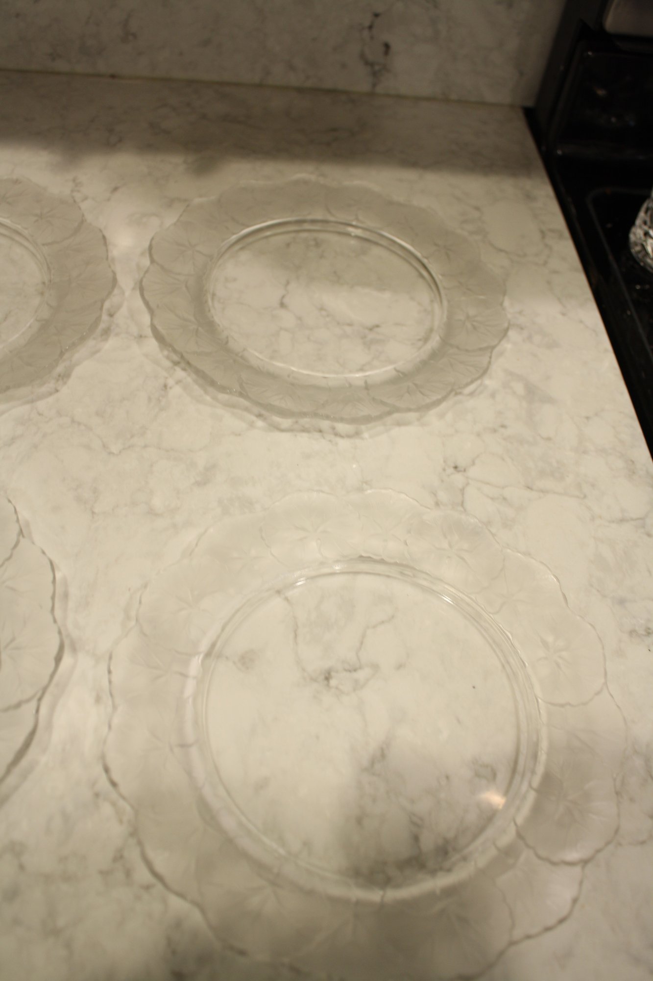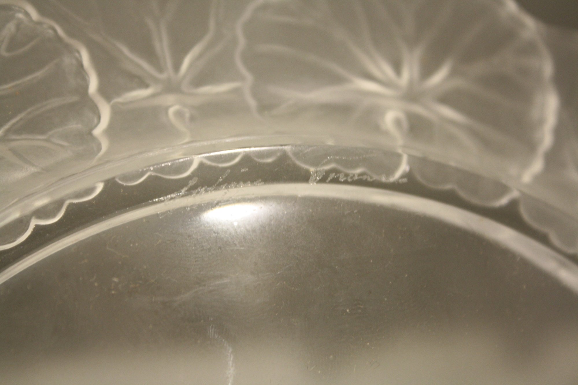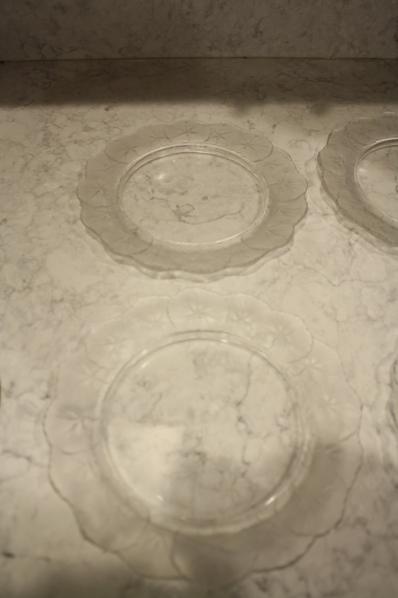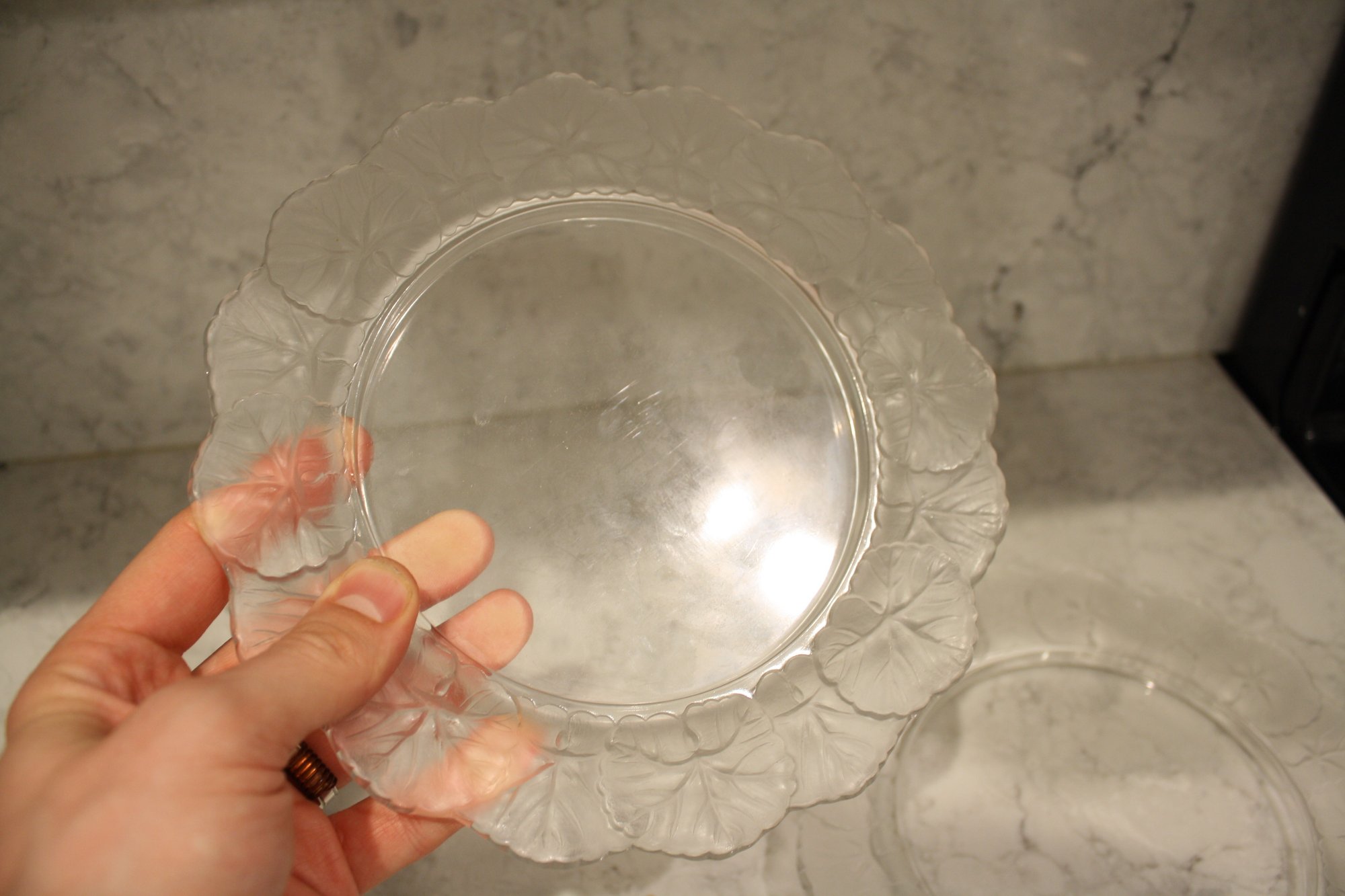 set of 4 Lalique Honfleur Crystal Plates Set (Geranium Leaf Border) #2 9 inches