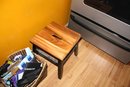 Solid wood square stool featuring a natural wood grain top and dark-finished legs. Sturdy and versatile, suitable for seating, side tables, or decorative accents in living spaces. Combines functional design with classic rustic style.