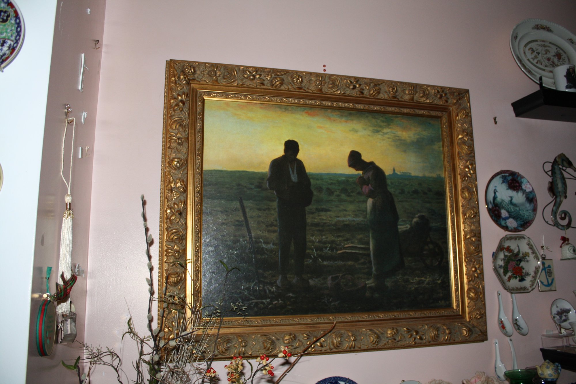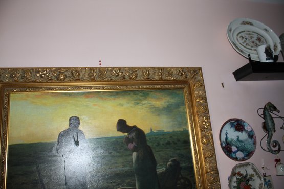 This is The Angelus (L'Angélus), a renowned oil painting by French Realist painter Jean-François Millet, completed between 1857 and 1859. The work depicts two peasants pausing in a field for evening prayer, showcasing Millet’s masterful use of light, composition, and rural realism. A celebrated piece in 19th-century French art history.