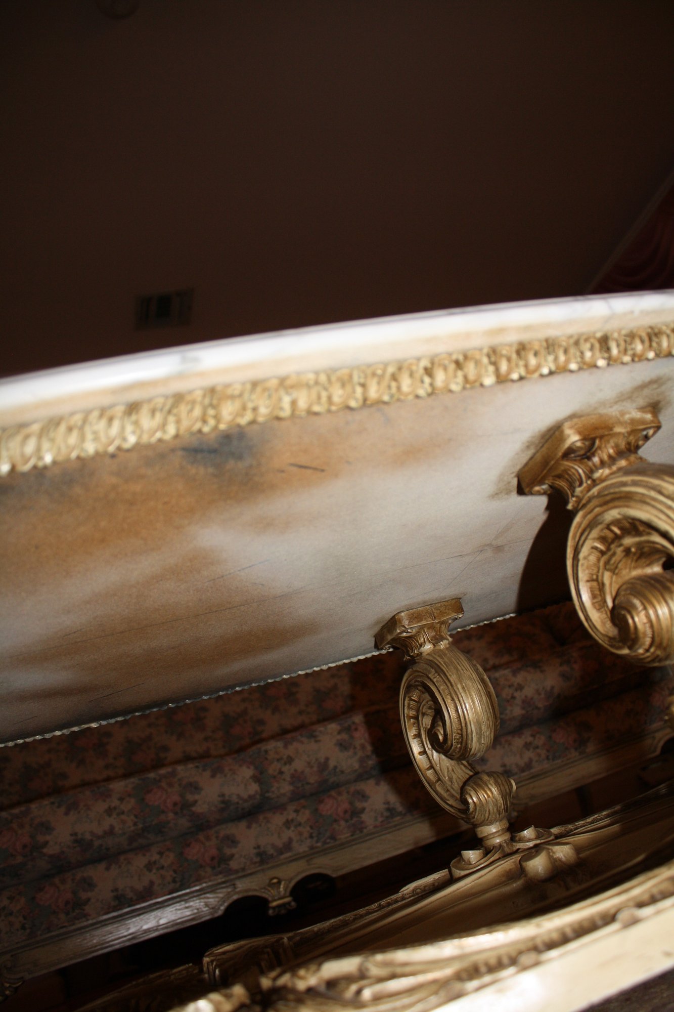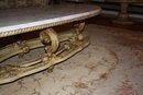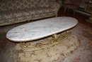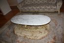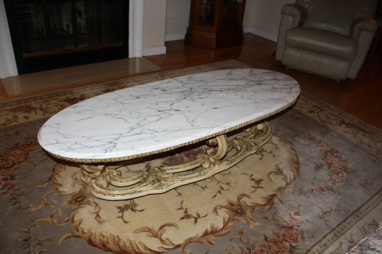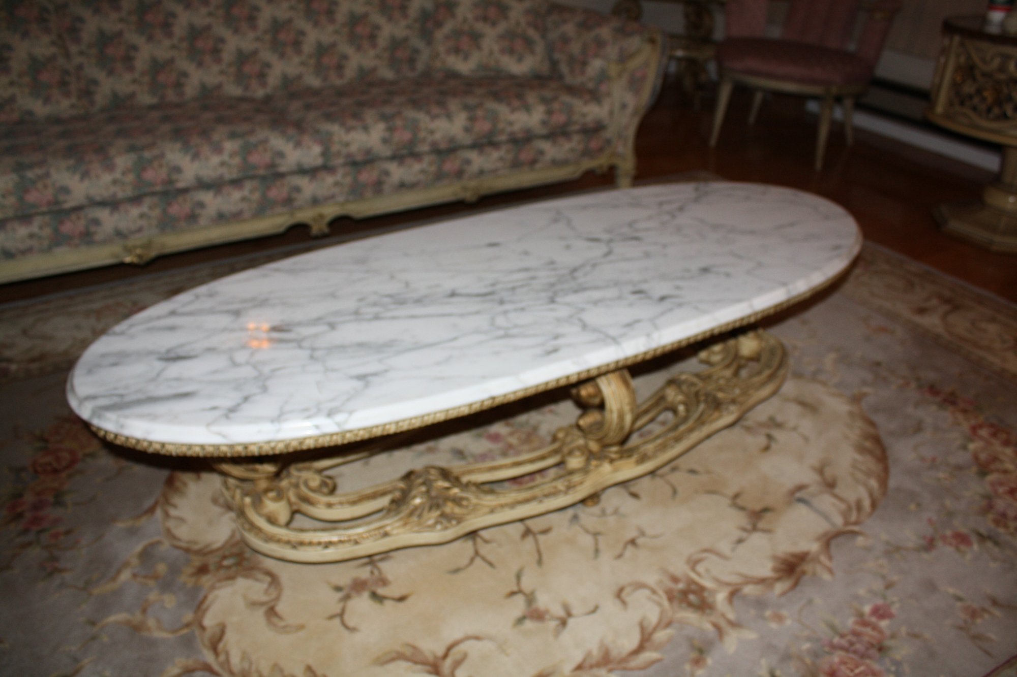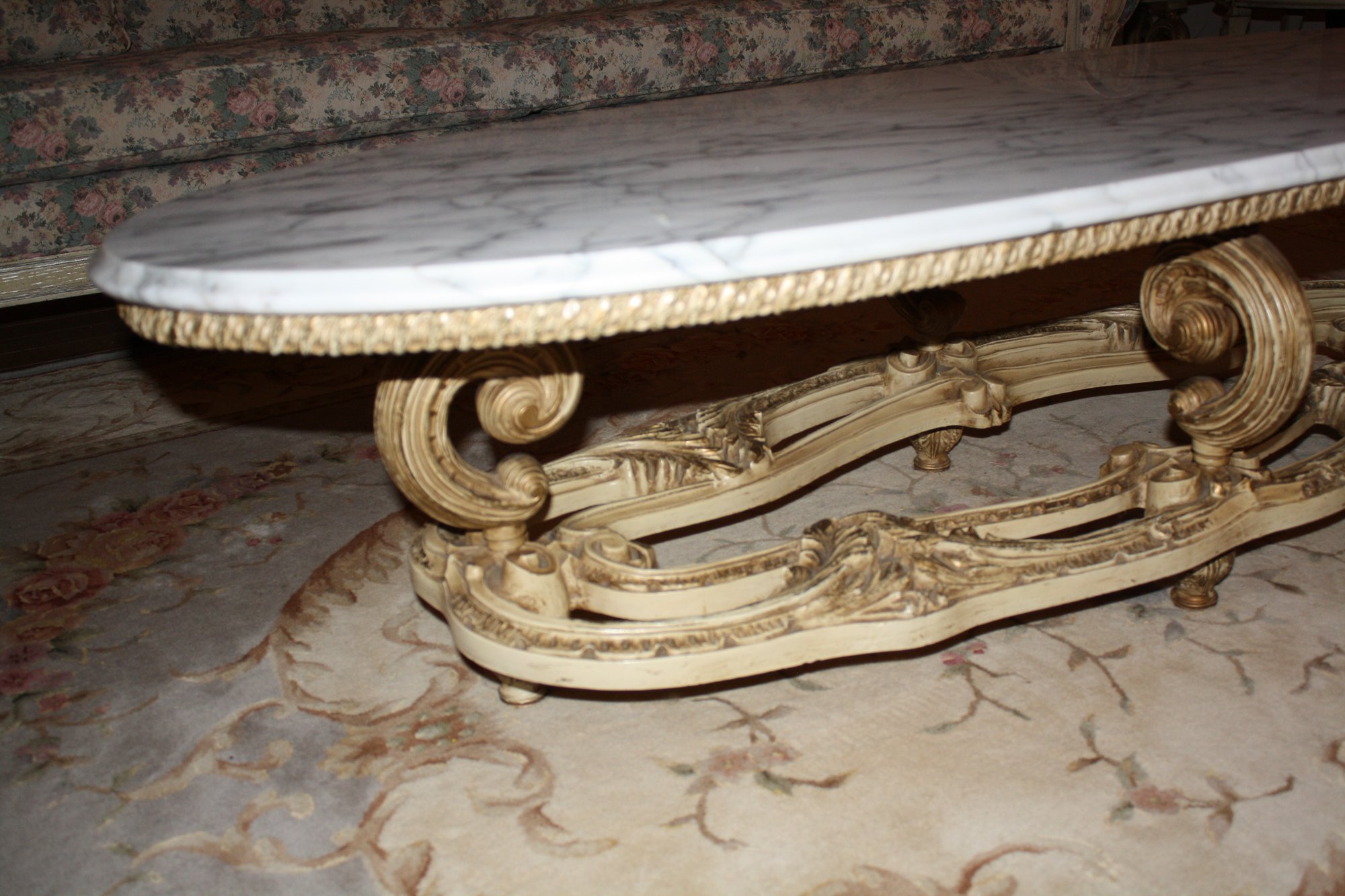 UPDATED MEASUREMENTS 59X23X16H Stunning French Provincial Oval Coffee Table With Carrara Marble Top