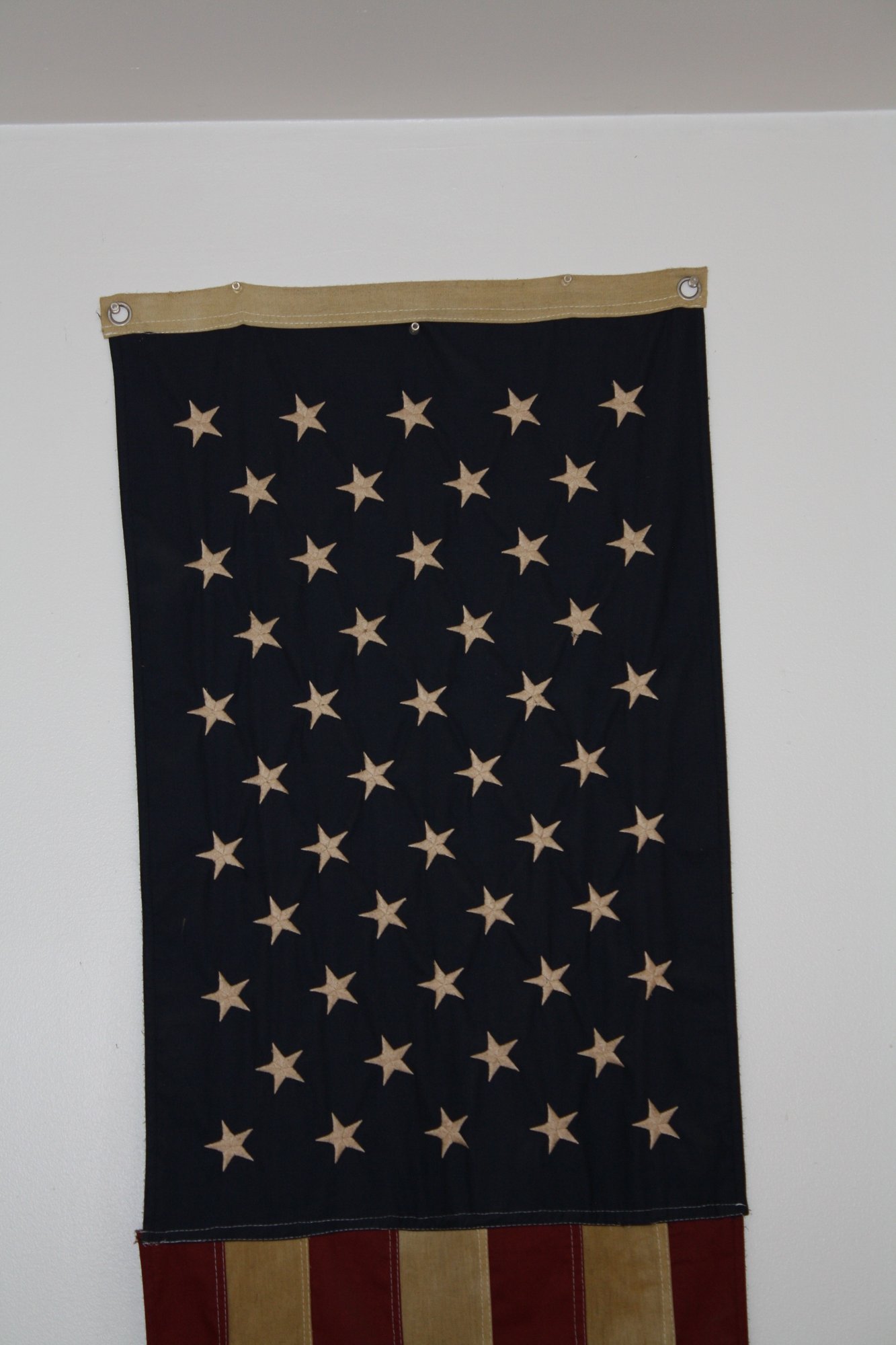 very tall Vertical American Flag seems old
