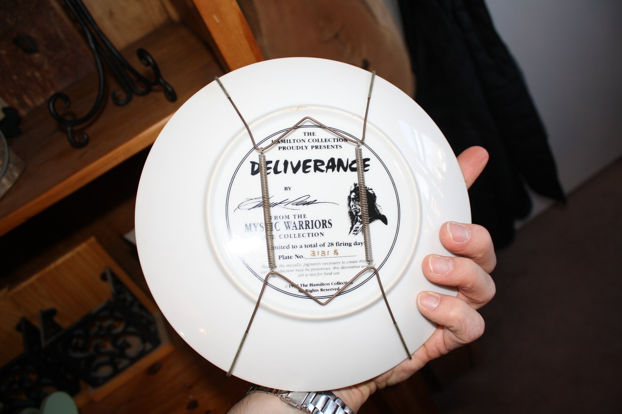 Vintage Hamilton Collection collector plate titled “Deliverance,” part of the Mystic Warriors series, featuring artwork by Chuck Ren. Porcelain plate with metallic pigments, approximately 8.5–10 inches in diameter, intended for display rather than food use. A collectible piece for fans of Hamilton Collection art plates and fantasy-themed decorative items.