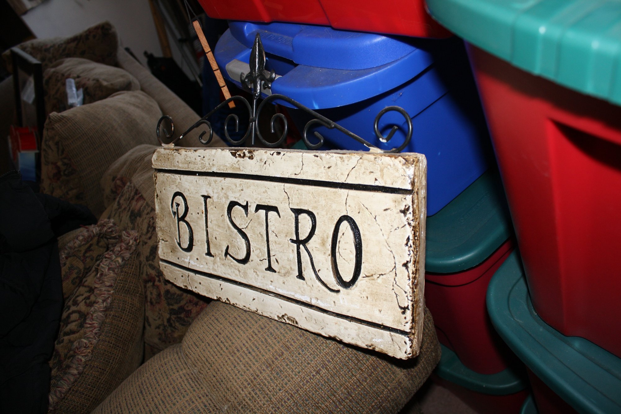 Vintage-style bistro wall sign crafted from heavy resin or metal with a crackle finish. Designed as a decorative wall plaque to add a rustic or café-inspired accent to kitchens, dining areas, or living spaces.