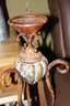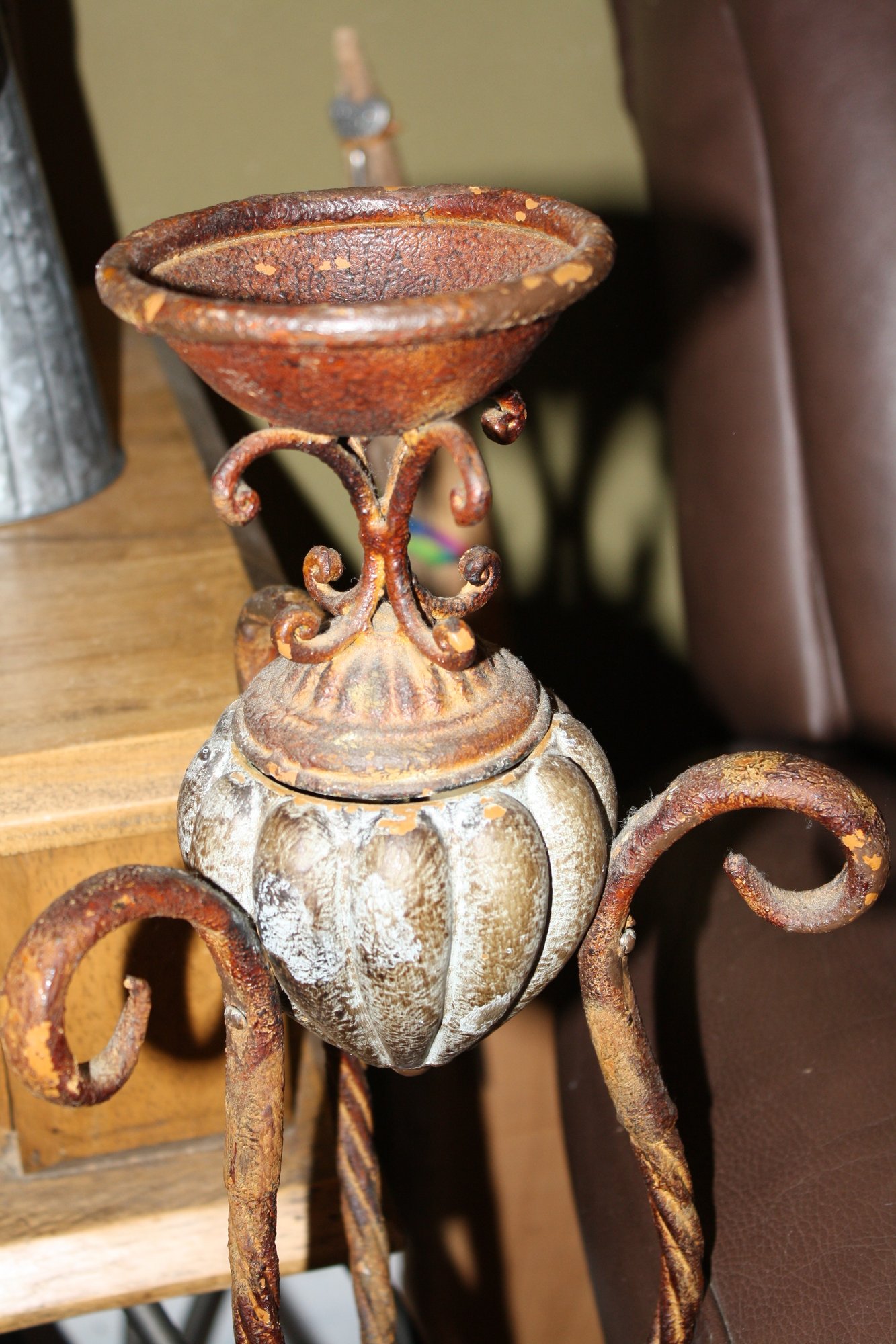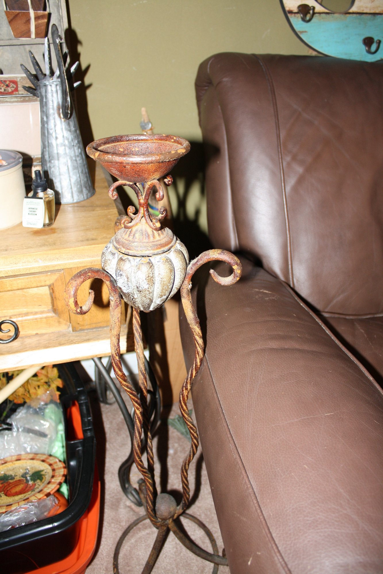 Tall vintage-style iron candle holder, 34 inches in height, featuring a sturdy metal frame with decorative scrollwork. Designed to hold pillar or taper candles, ideal for adding a classic, rustic, or antique-inspired touch to home décor. Suitable for tabletop or floor display in living rooms, entryways, or dining areas.