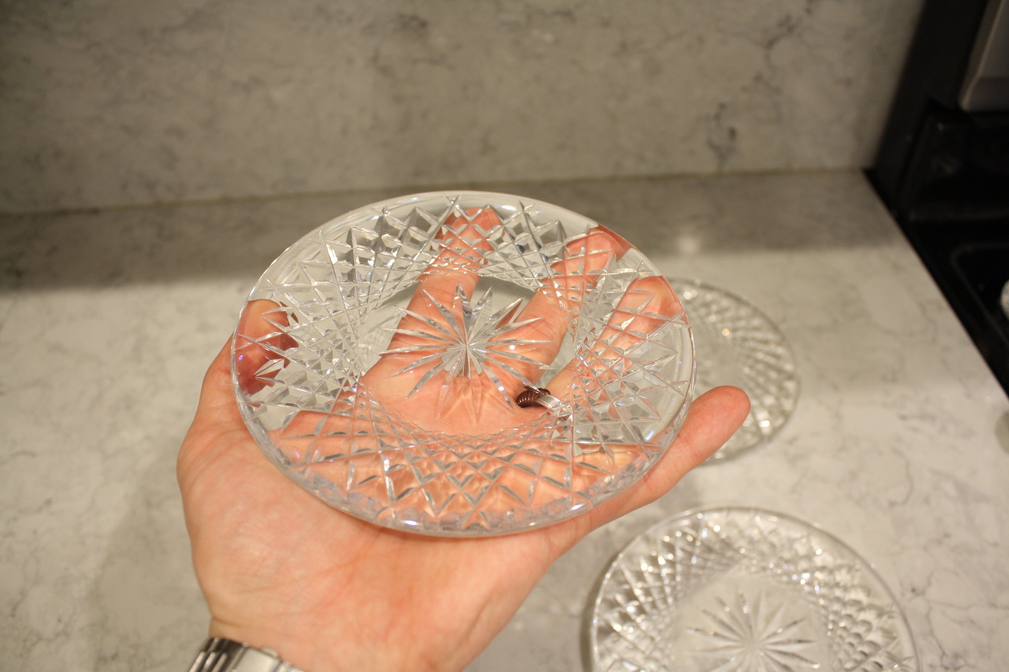 Vintage Waterford Crystal dish featuring a classic cut glass design with a prominent central starburst pattern, crafted in fine lead crystal and typically measuring approximately 5 inches in diameter, suitable for decorative or small serving use