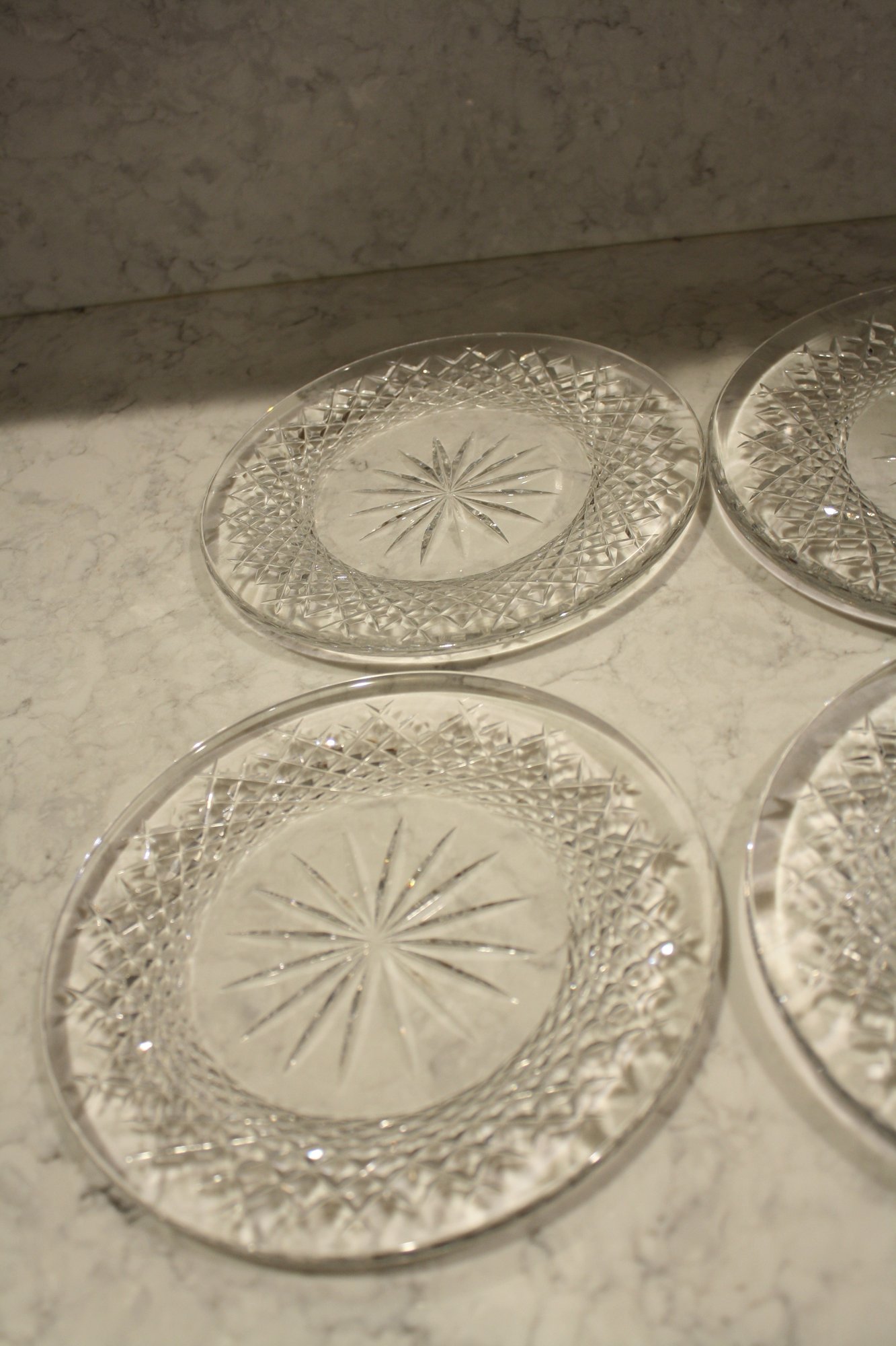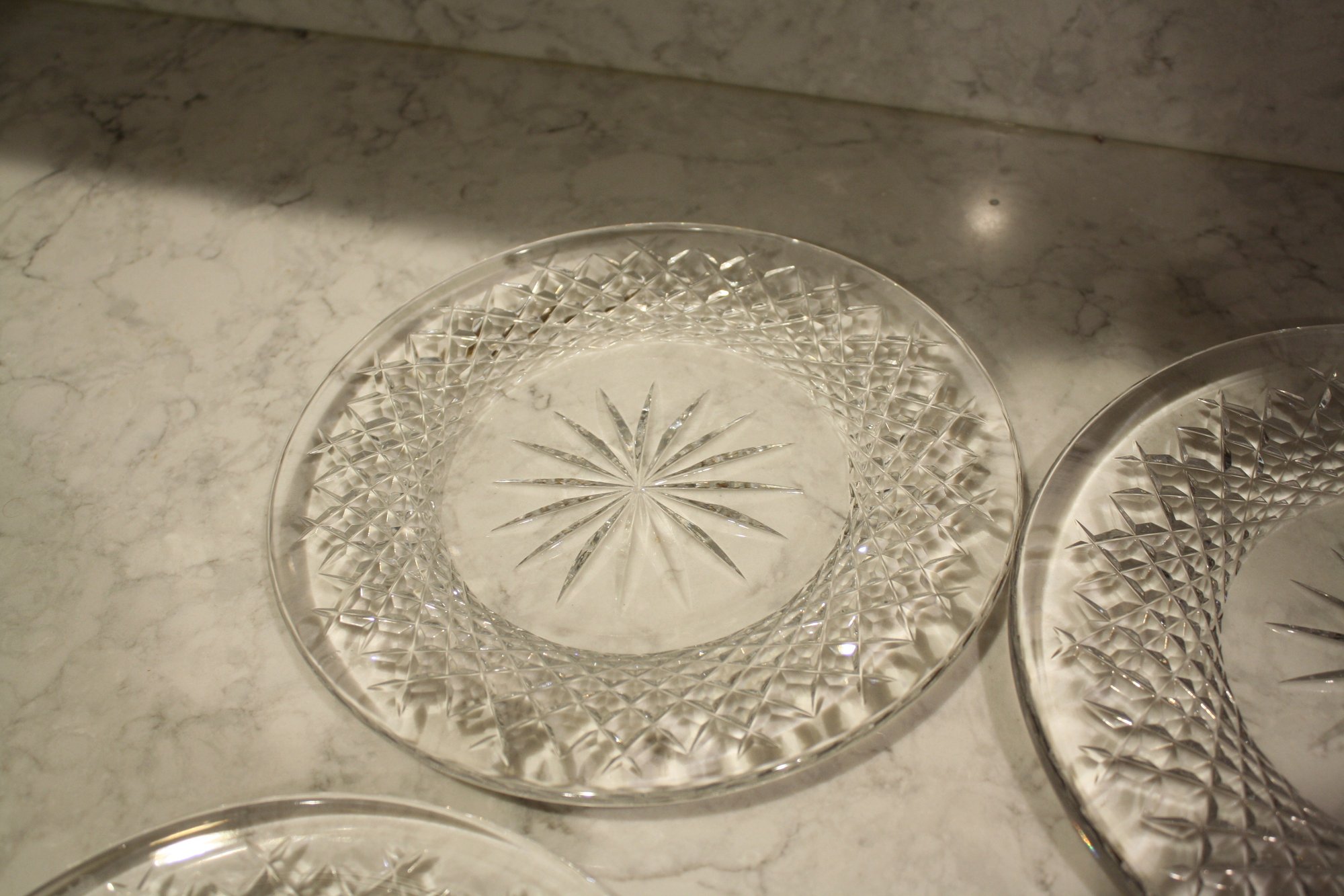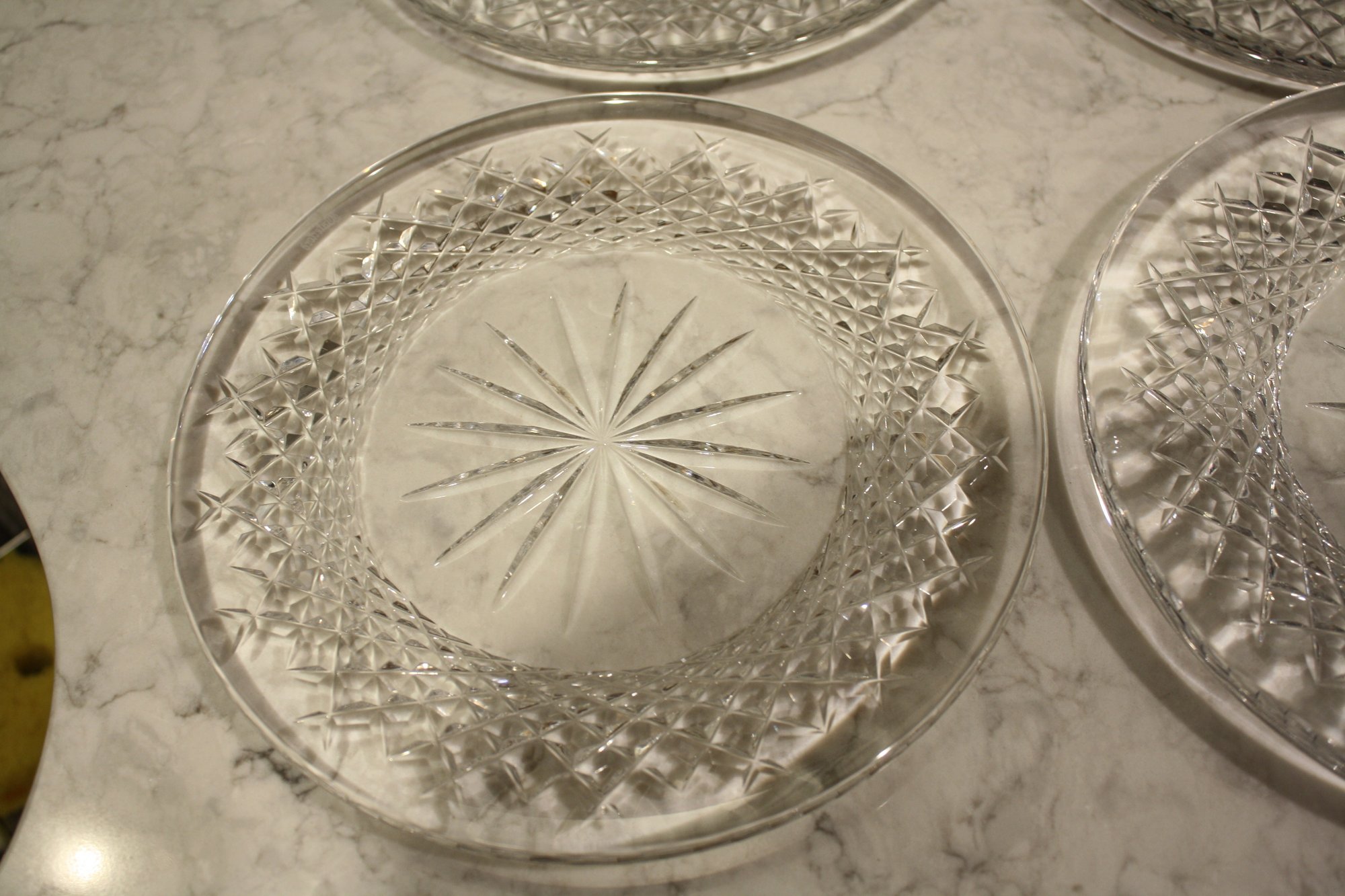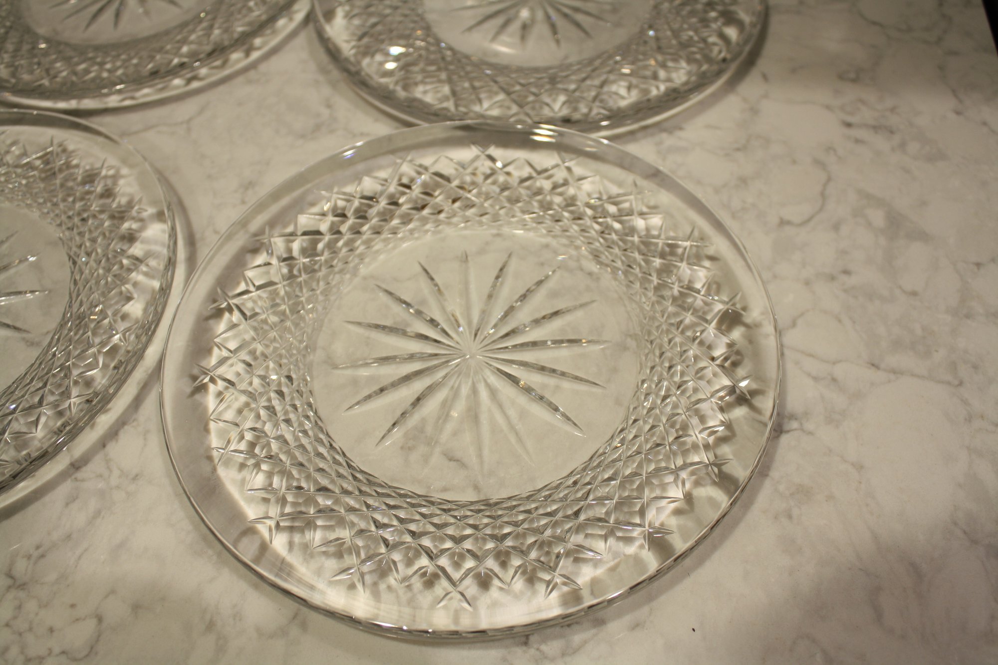 Waterford Vintage Thistle Cut Crystal Bread & Butter Plates Starburst Design Set Of 4 8.25 inches