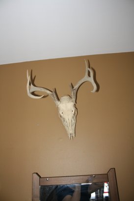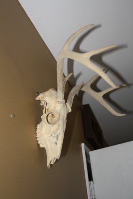 Whitetail deer European mount featuring a cleaned and whitened skull with natural antlers. This style of taxidermy highlights the bone structure and antler formation and is commonly displayed as a hunting trophy or rustic decor piece. Suitable for wall hanging or tabletop display in a cabin, lodge, or collection of natural history items.