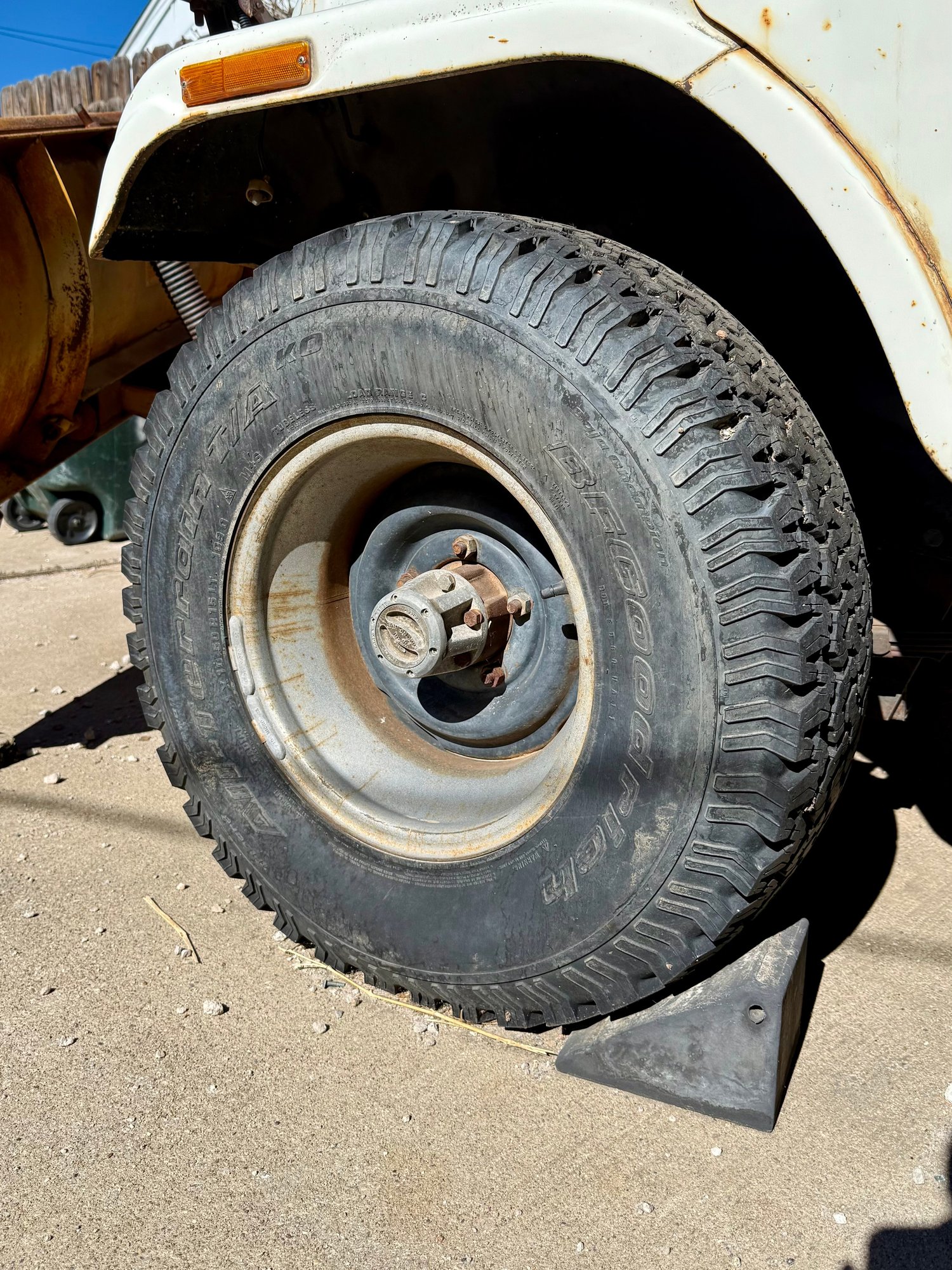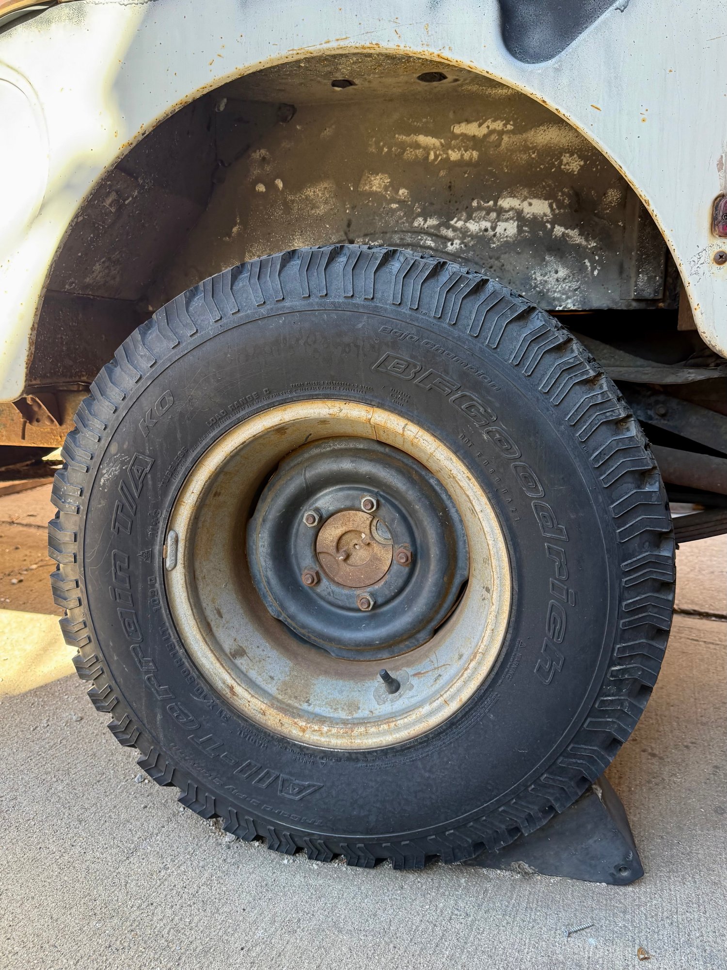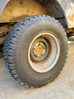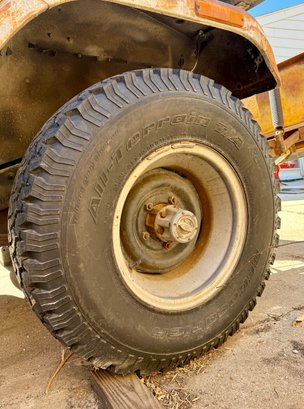 Lots of surface rust as photographed, tires appear to be in great condition, interior is bare and needs some work