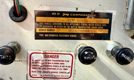 Hydraulic plow is tested and works (as seen in photos) and is controlled by an installed panel under the dash