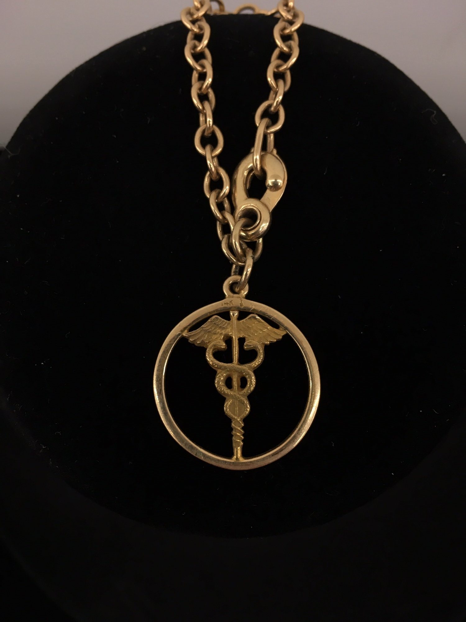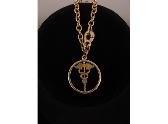 Hermes Medical emblem is marked 14 K chain is unmarked.