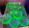 Lot of 15 pieces of green depression glass pedestal sherbert cups in a few different styles