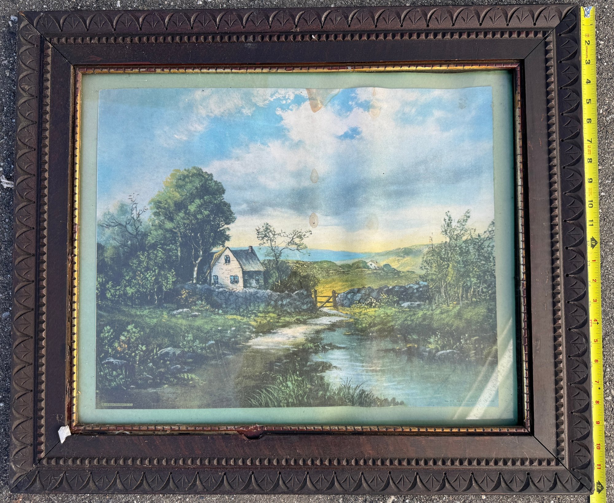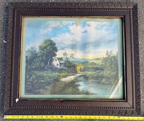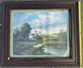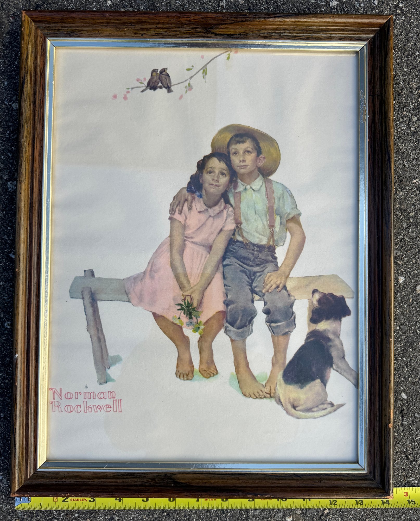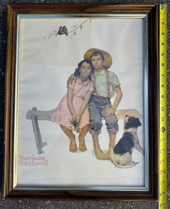 Lot of three pieces of wall art including "Hello Spring", Norman Rockwell, and countryside print in frame