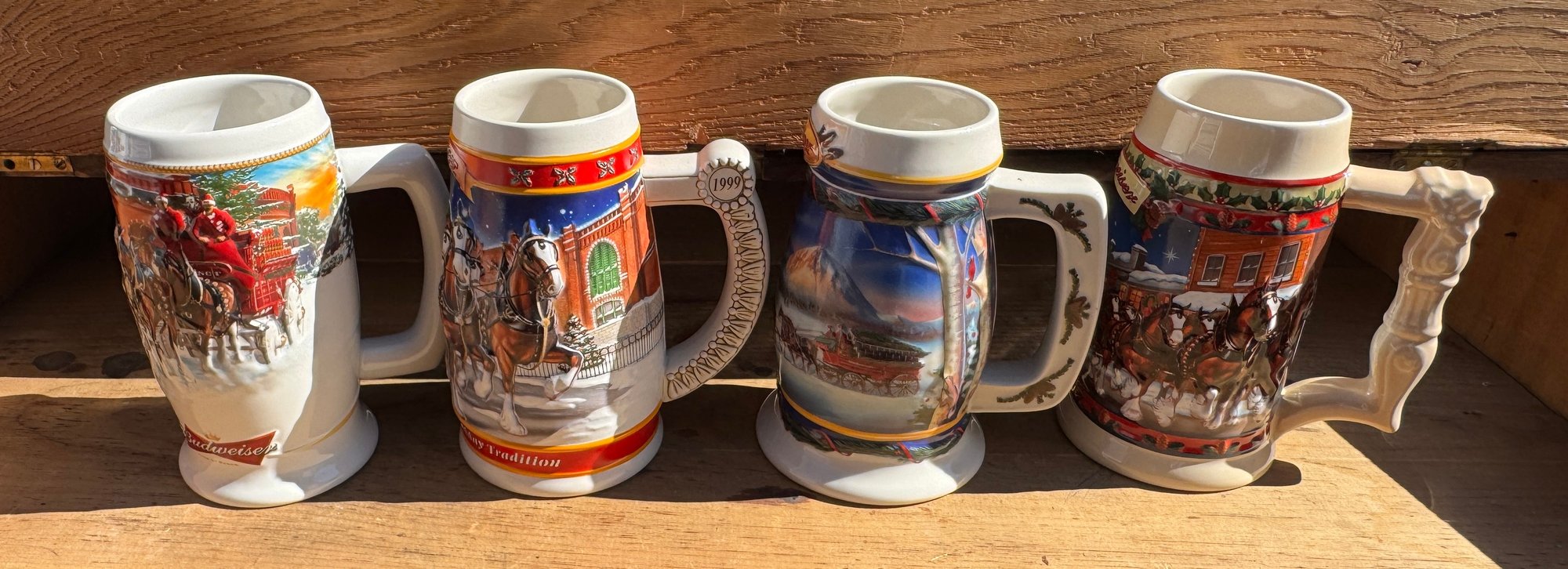 Lot of four Budweiser holiday mugs