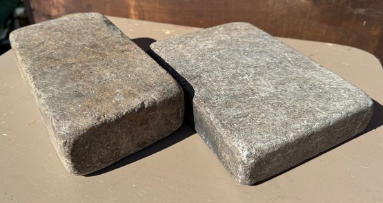 The larger appears to have a name etched into the stone, possibly "E B PINTHAM"