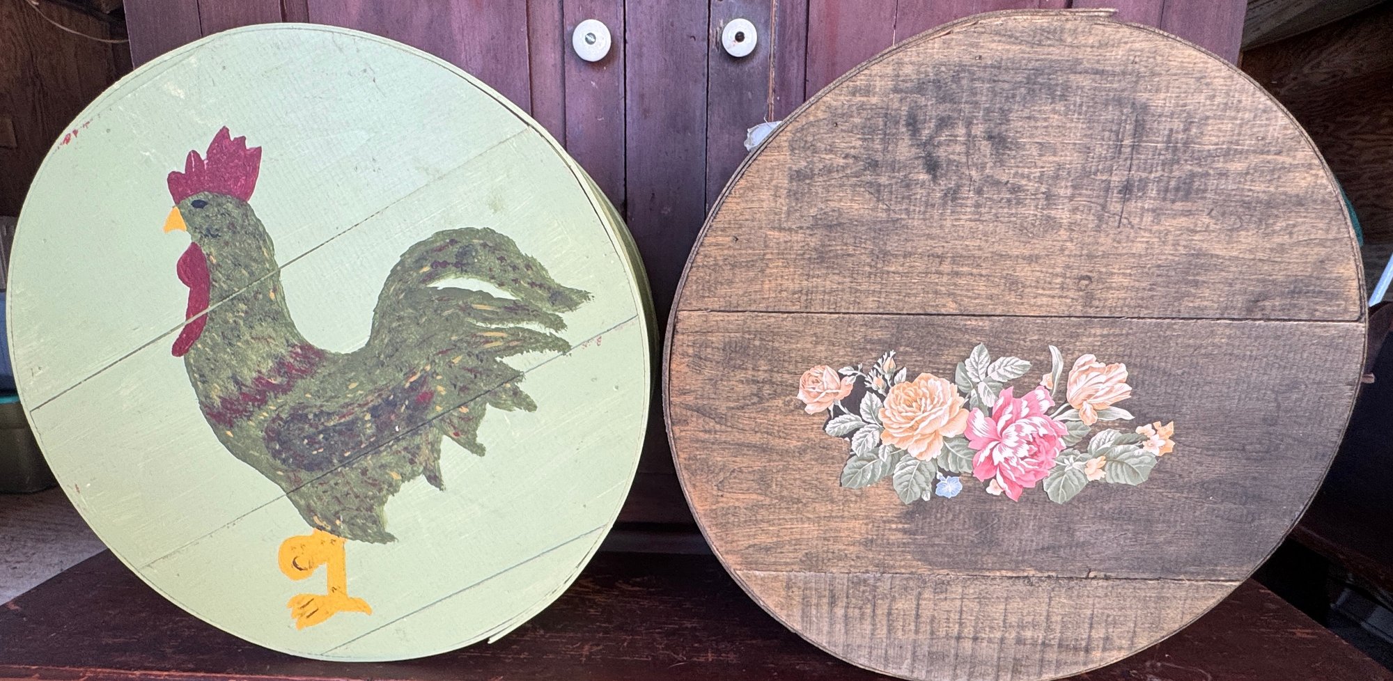 Lot of two antique wooden cheese boxes