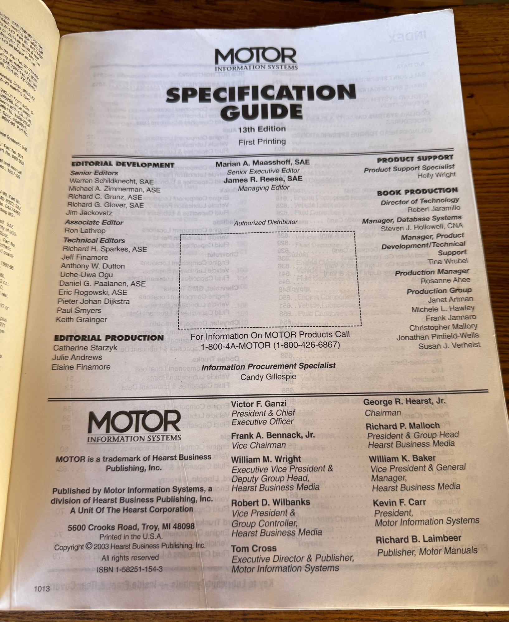 MOTOR Specification Guide 1992-2003: Domestic & Imported Cars, Light Trucks & Vans