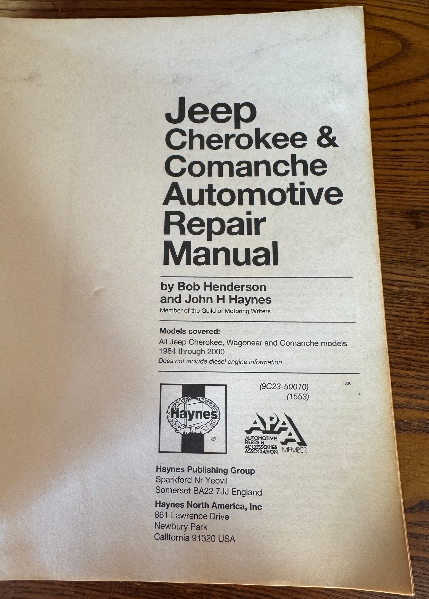 Haynes Repair Manual- Jeep Cherokee 1984-2000: Cherokee/ Wagoneer/ Comanche