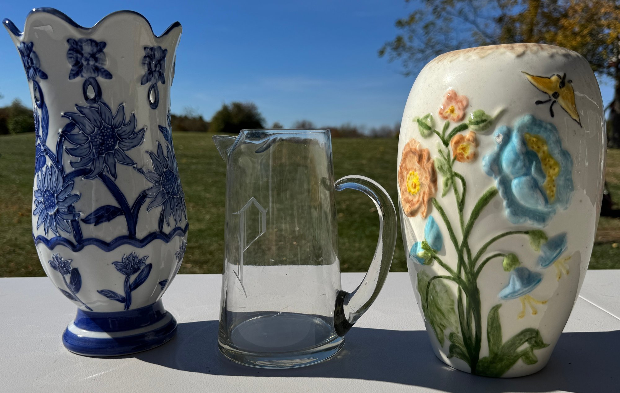 Pitcher is etched with "P" initial
