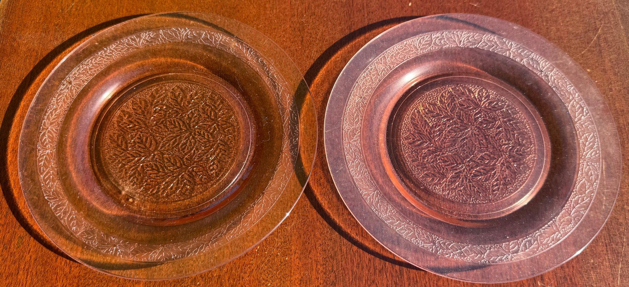 Glass has pressed leaf design