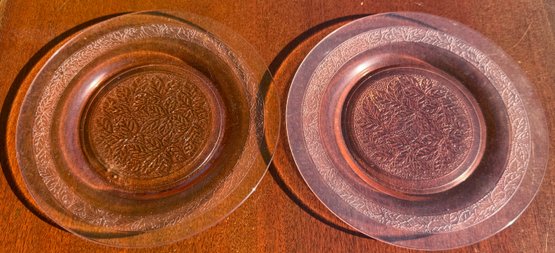 Lot of two vintage pink depression glass 8" plates
