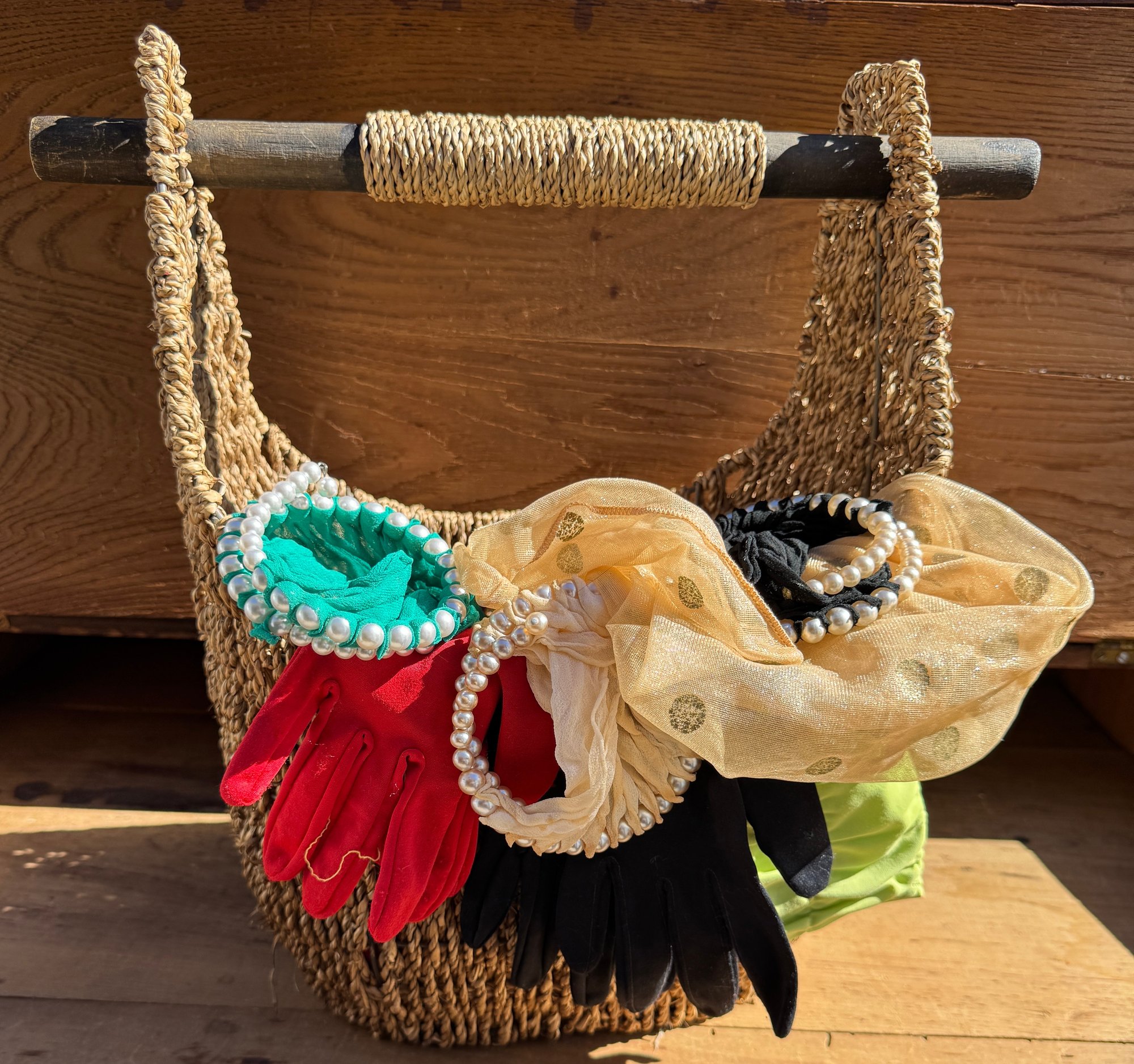 Lot of vintage accessories and basket