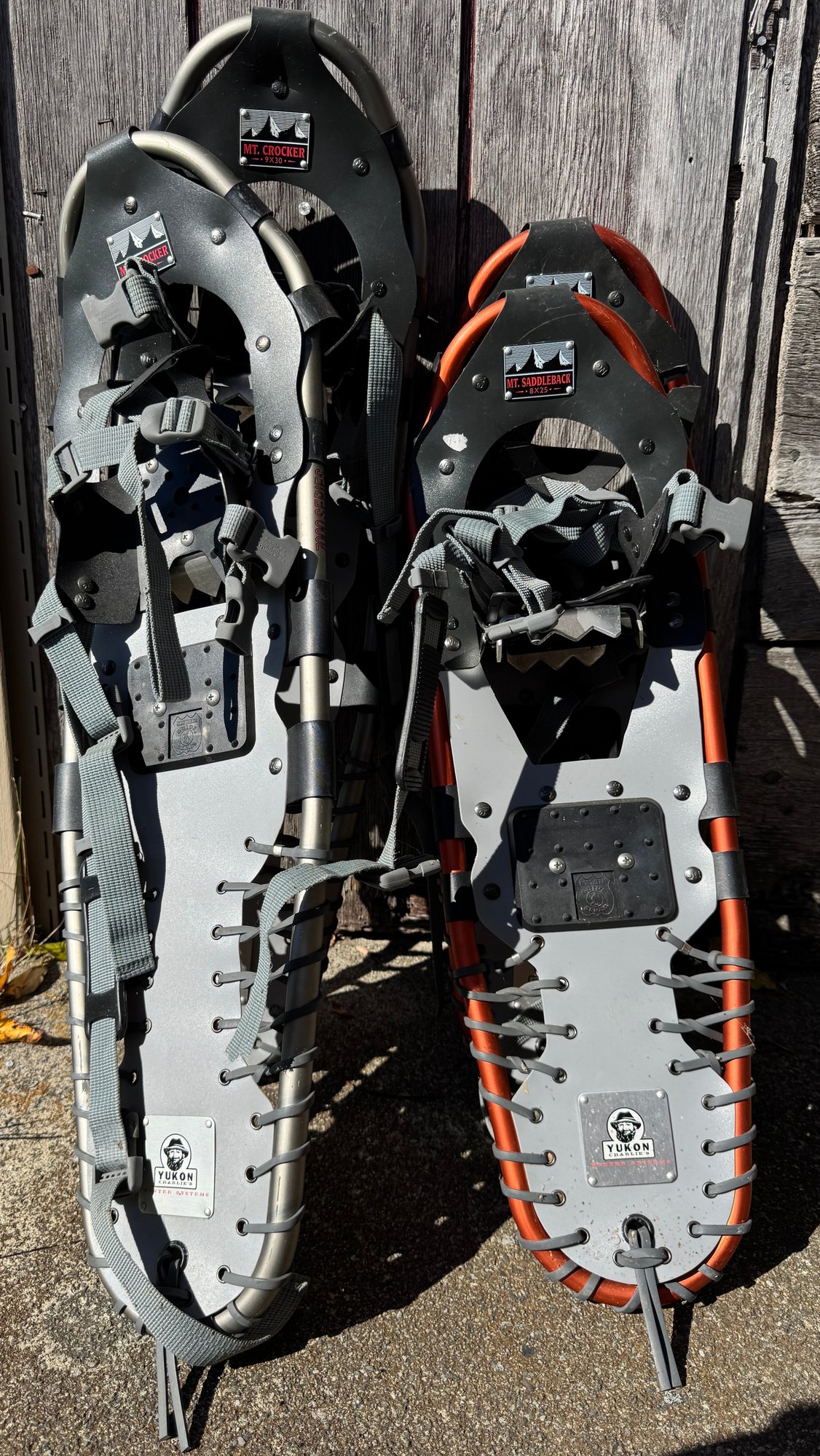 Two pairs of adult snowshoes by Yukon Charlie's Winter Systems