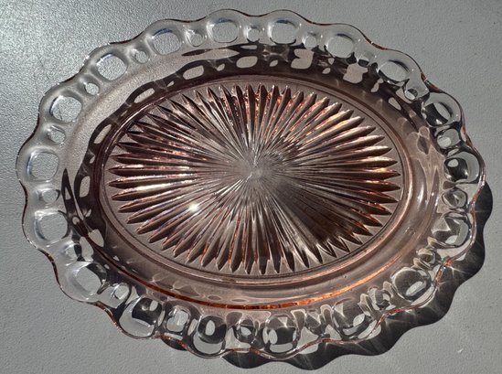 Vintage Old Colony open lace pink depression glass 12” serving plate/ platter