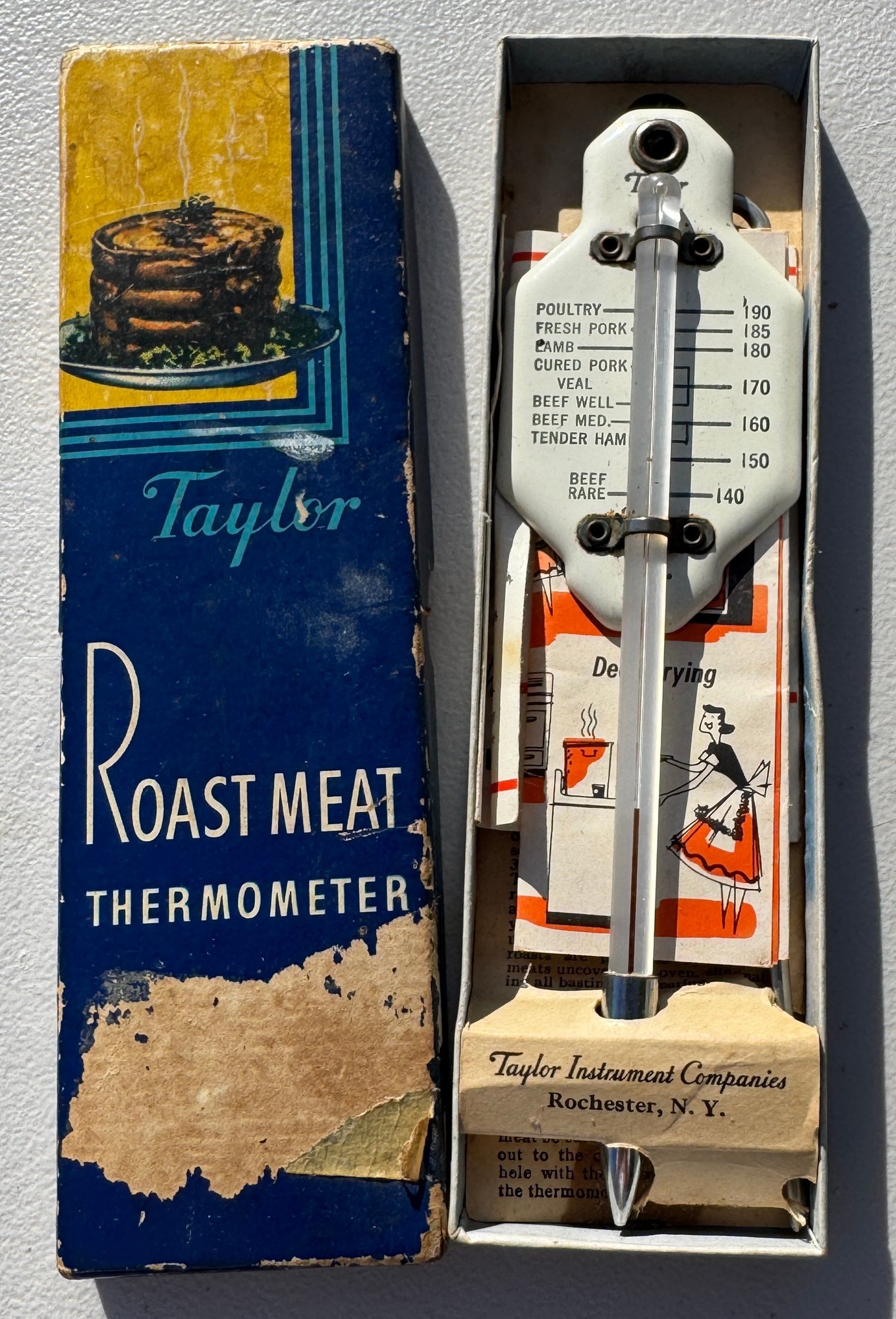Vintage Taylor Instrument Companies Roast Meat Thermometer in original box