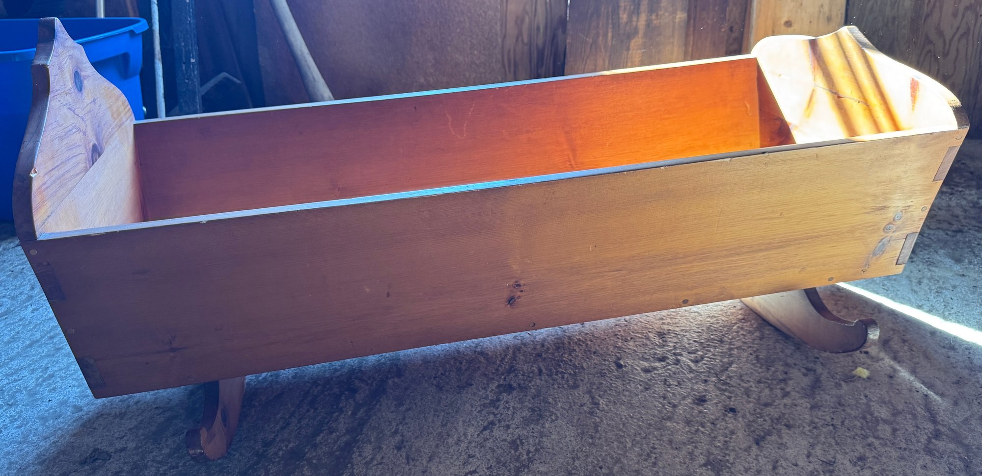 Vintage, primitive wooden infant rocking cradle