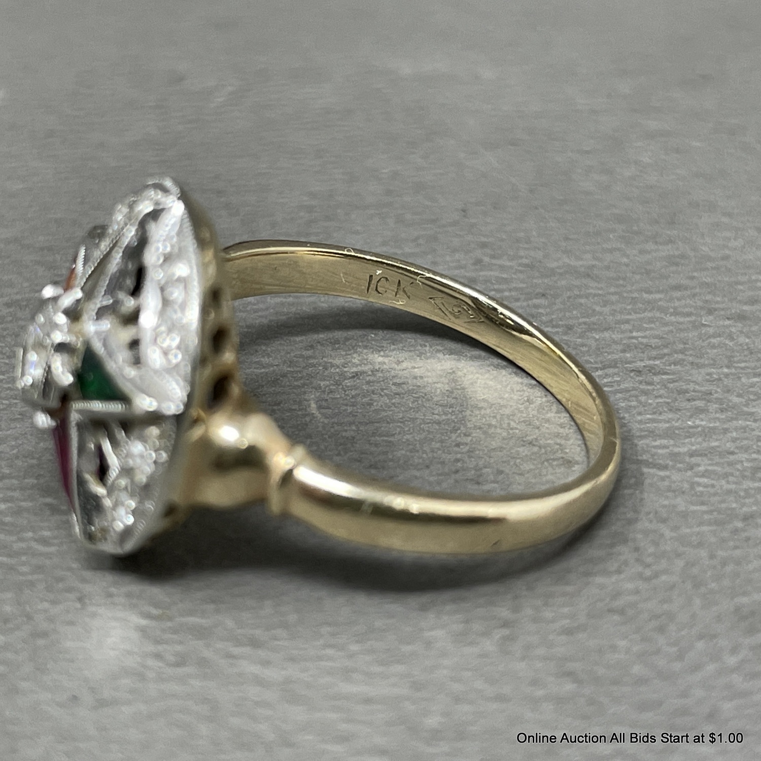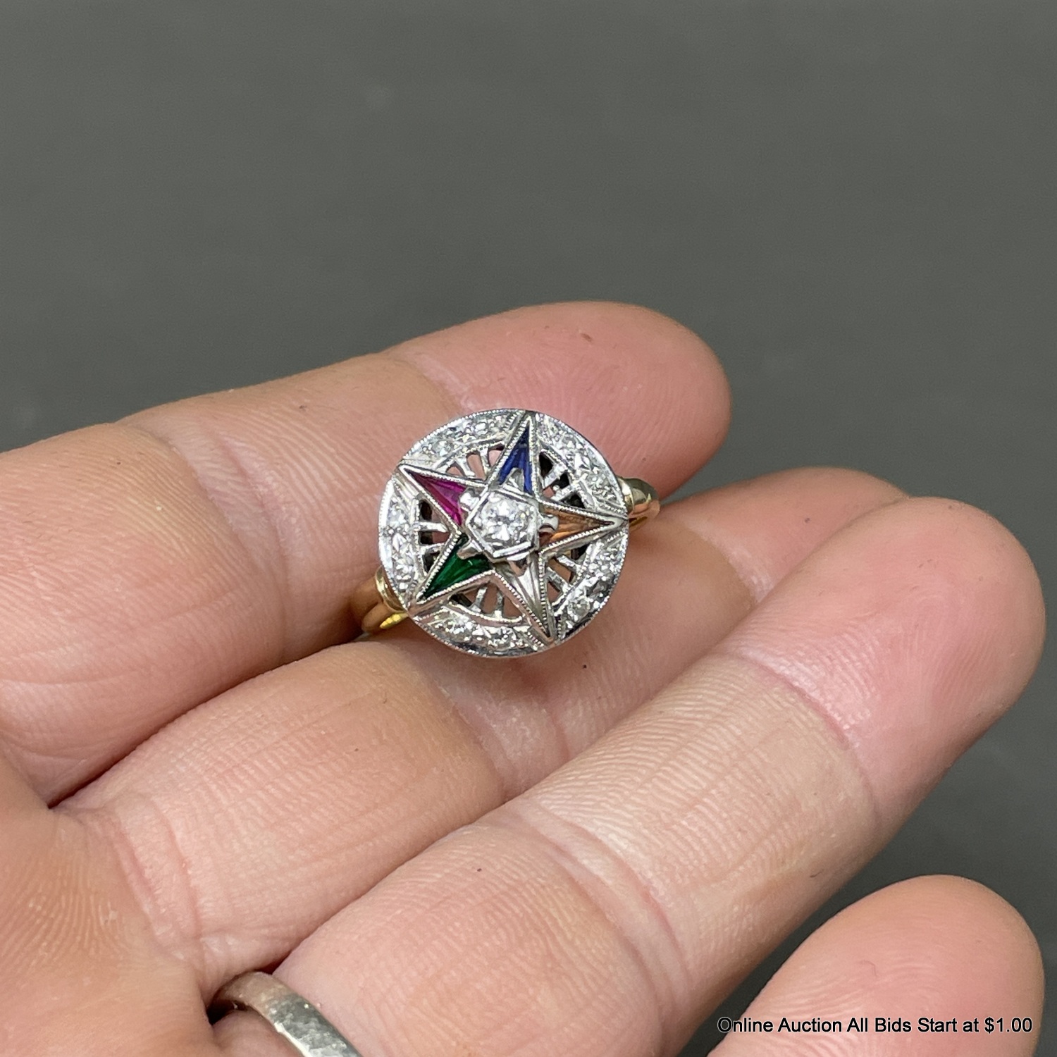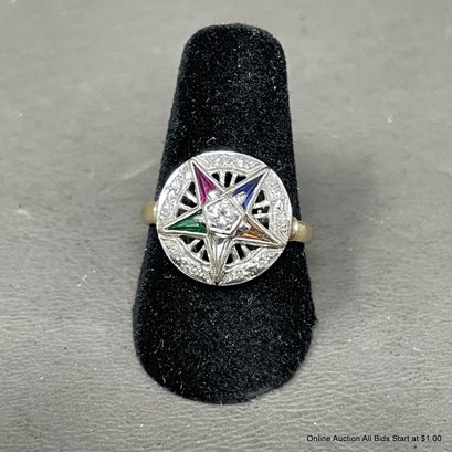 10K Yellow Gold & Diamond Masonic Ring Size 7