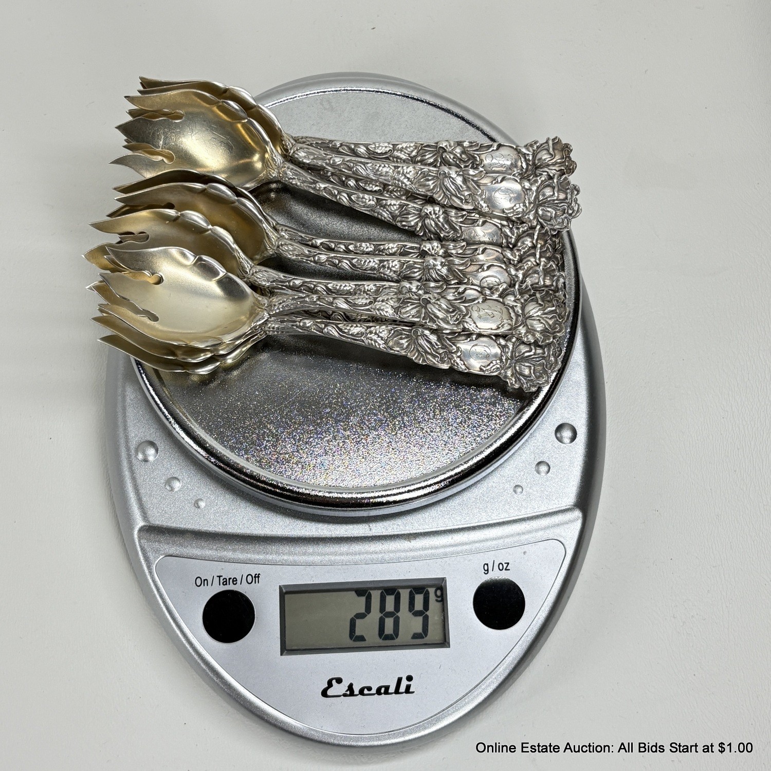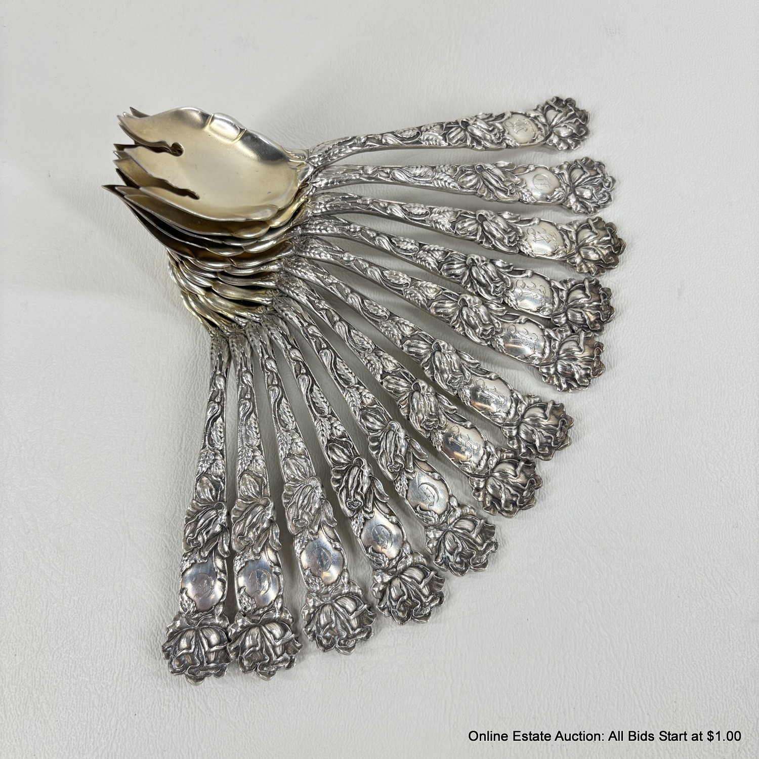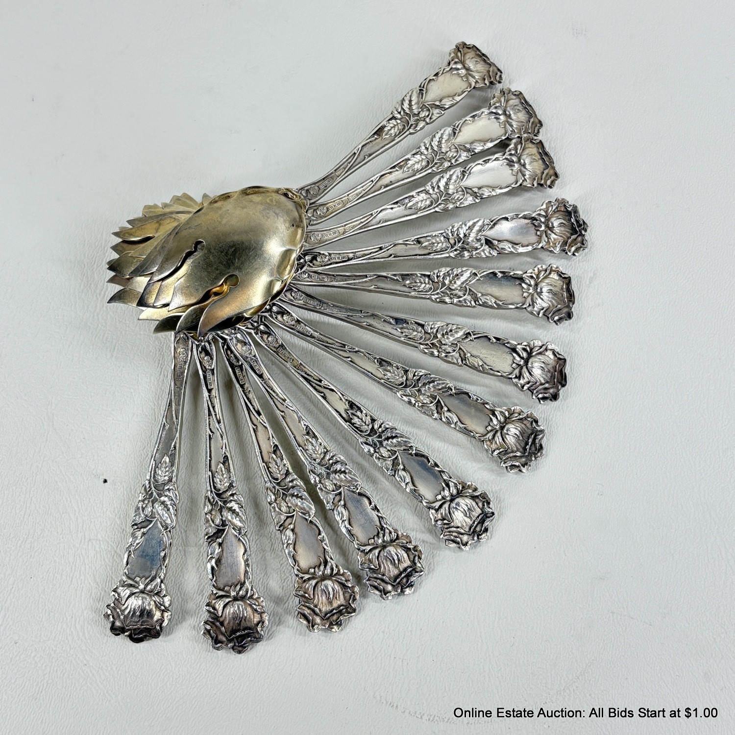 12 Bridal Rose By Alvin Sterling Silver Ice Cream Forks 289 grams