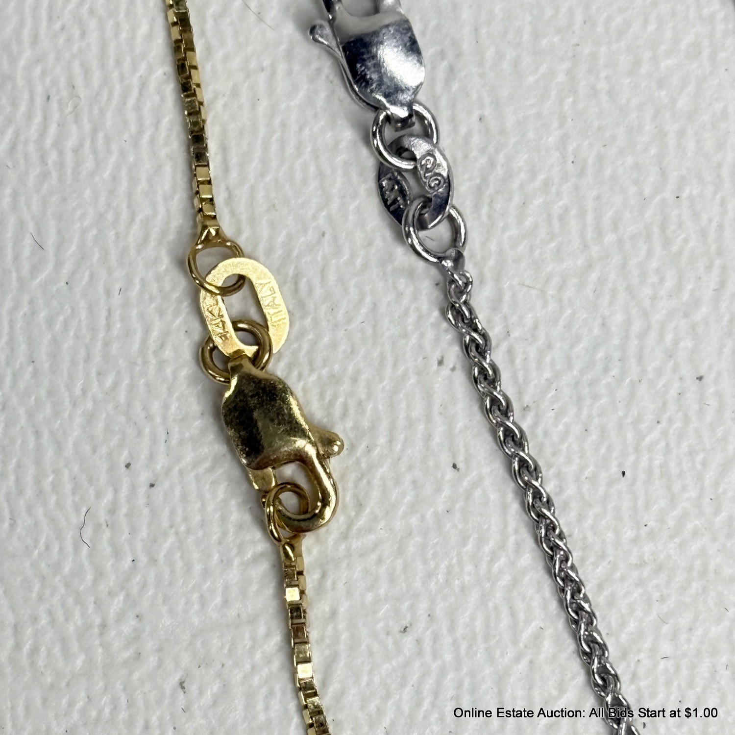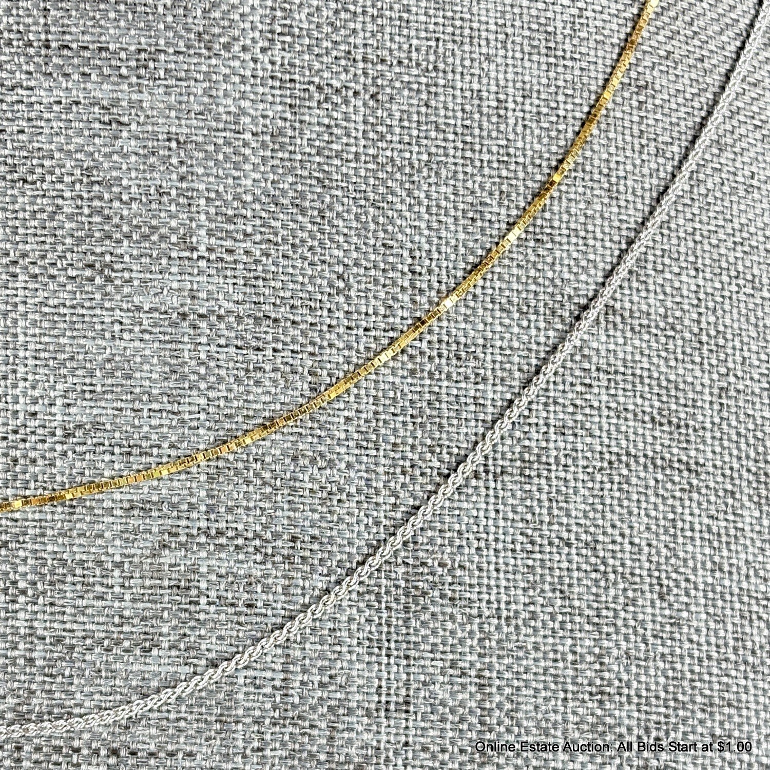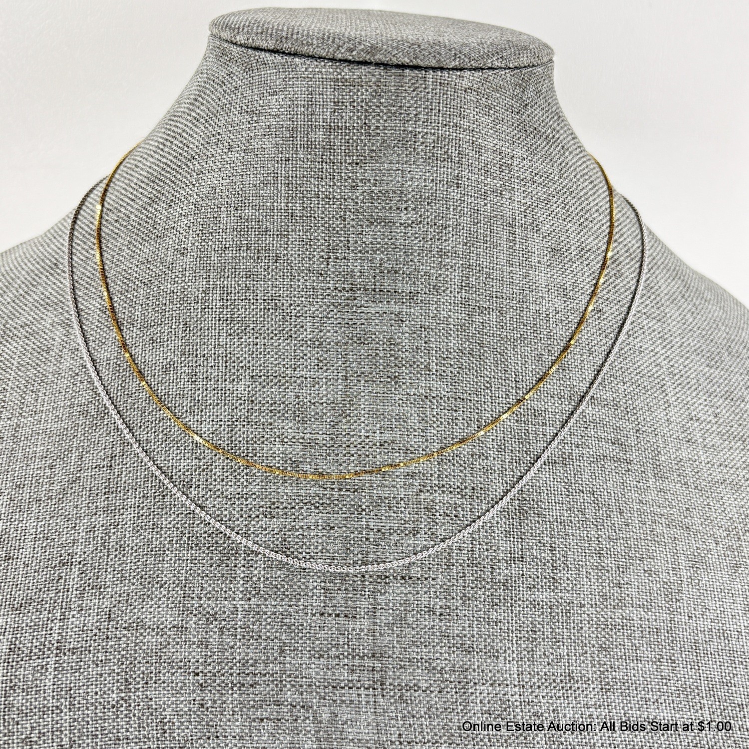 14K Gold and White Gold Necklace Chains 6 Grams Total weight