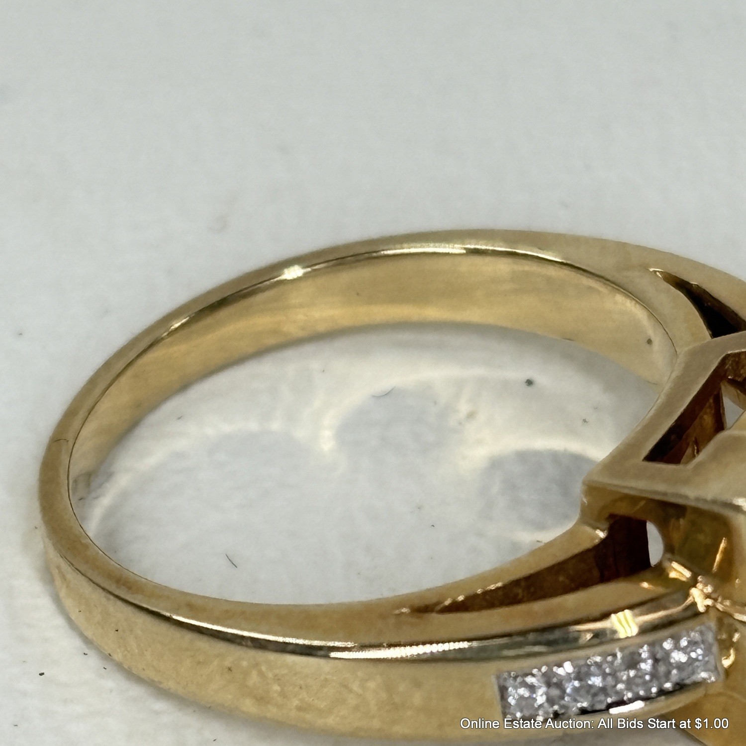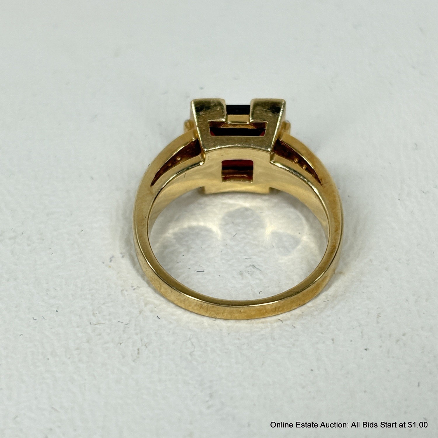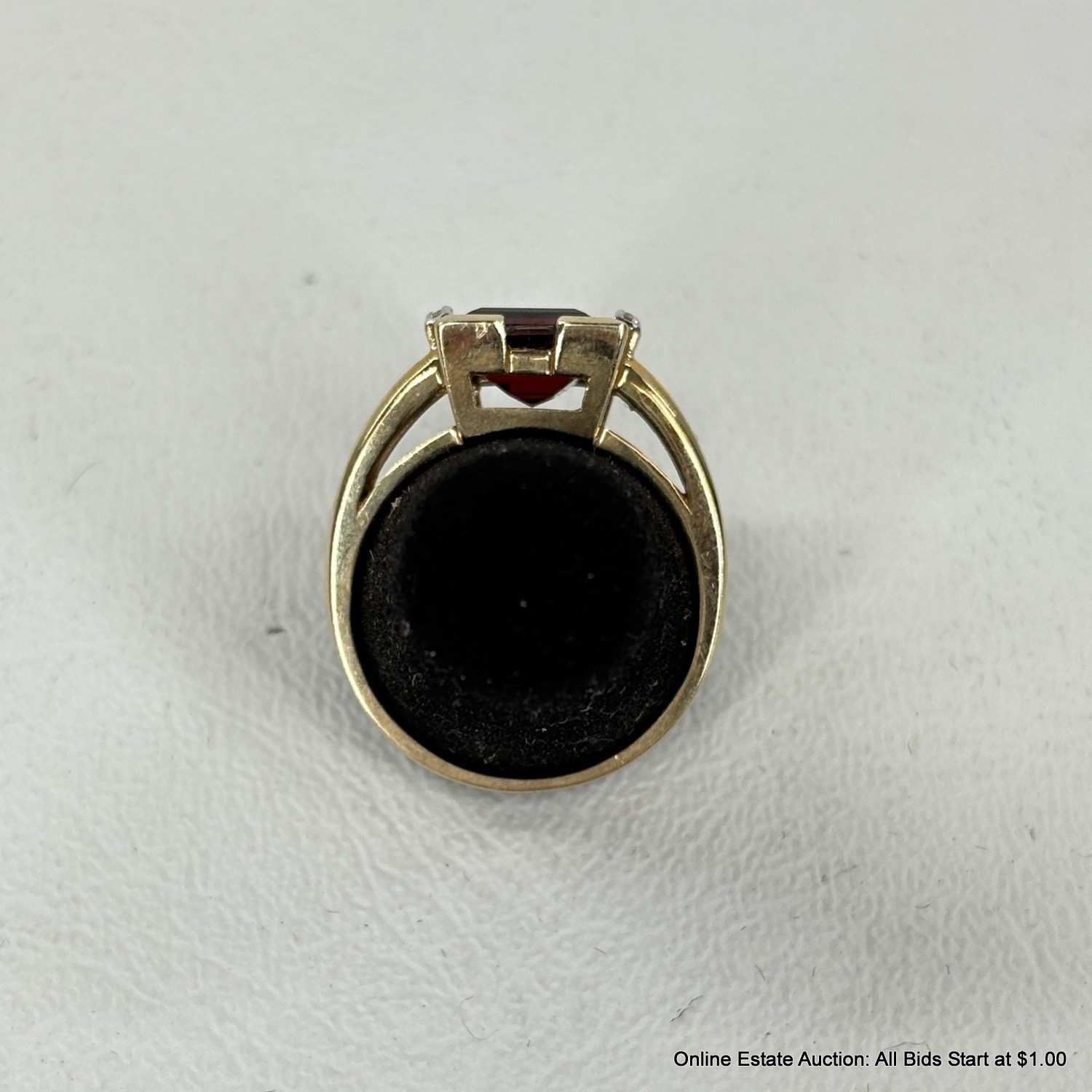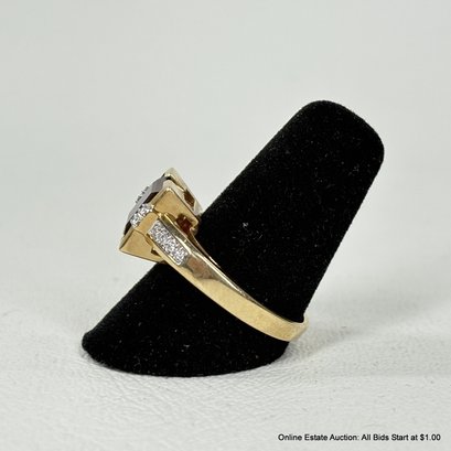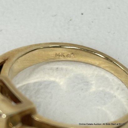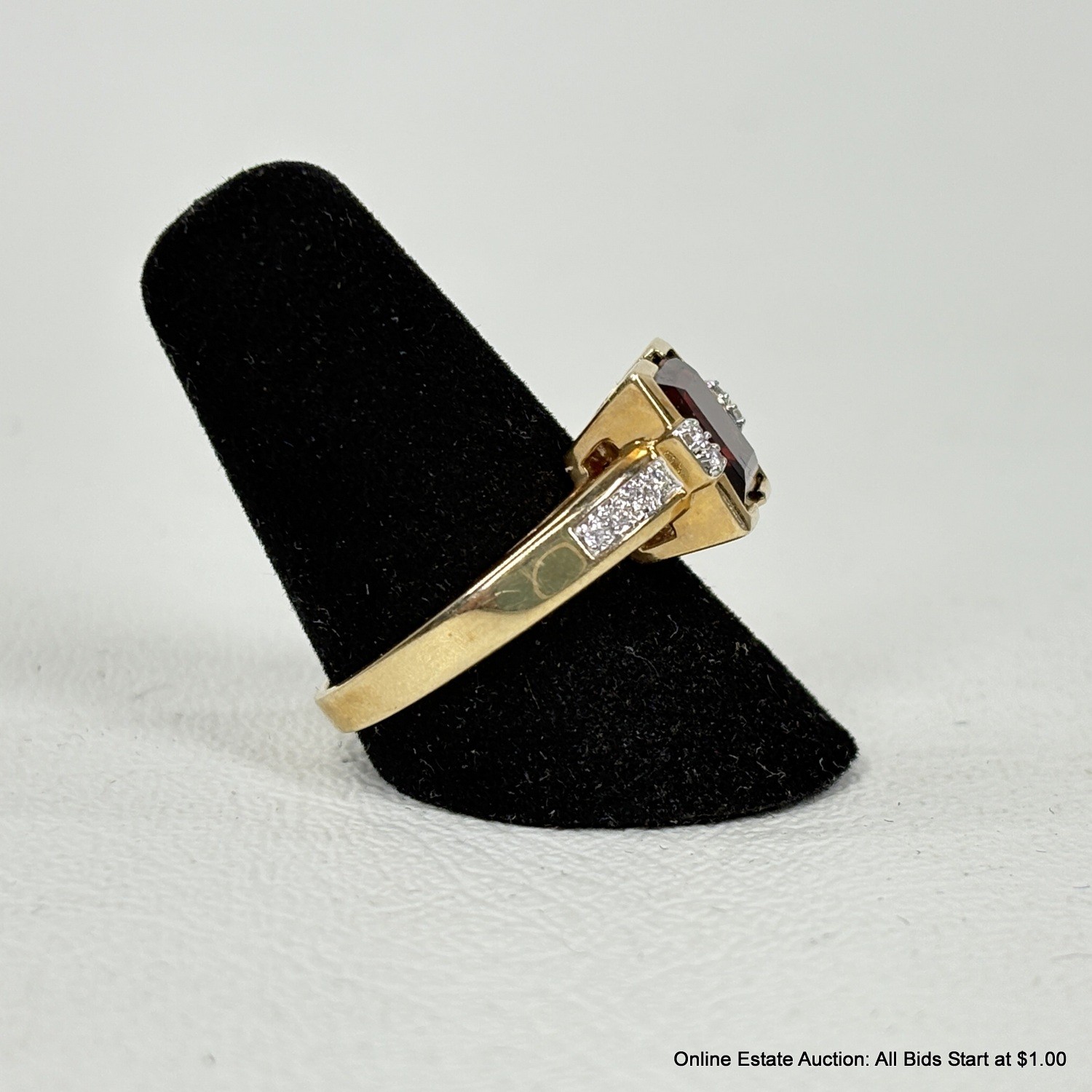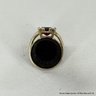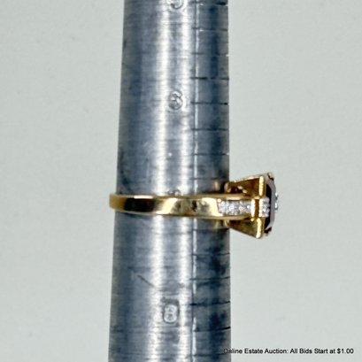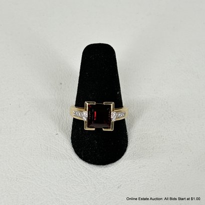 14K Gold Ring With Garnet And Side Diamonds 6 Grams Total Weight
