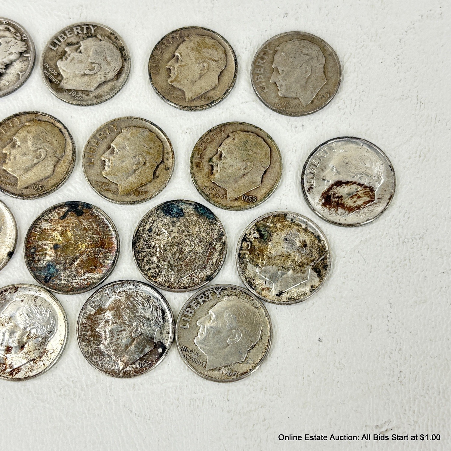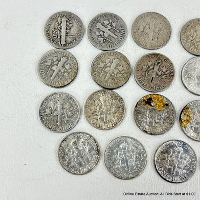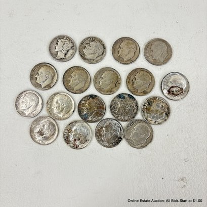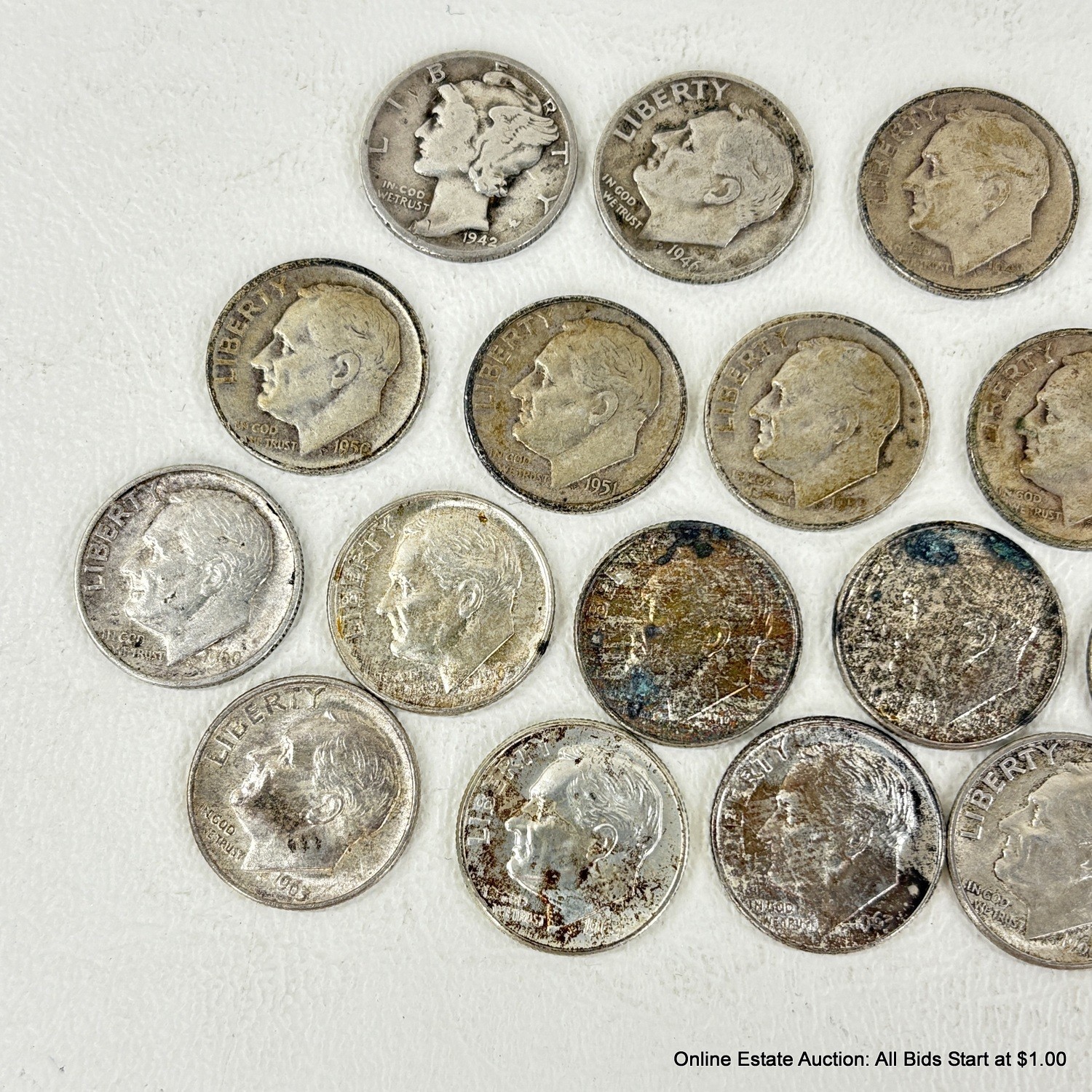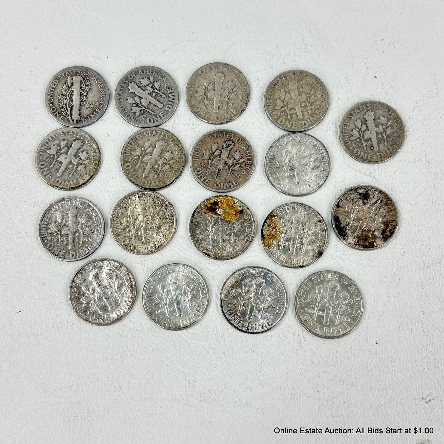 18 Ungraded Circulated U.S. 1942-1964 Dimes Including 1 Mercury Dime