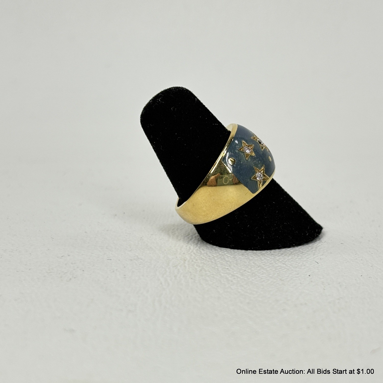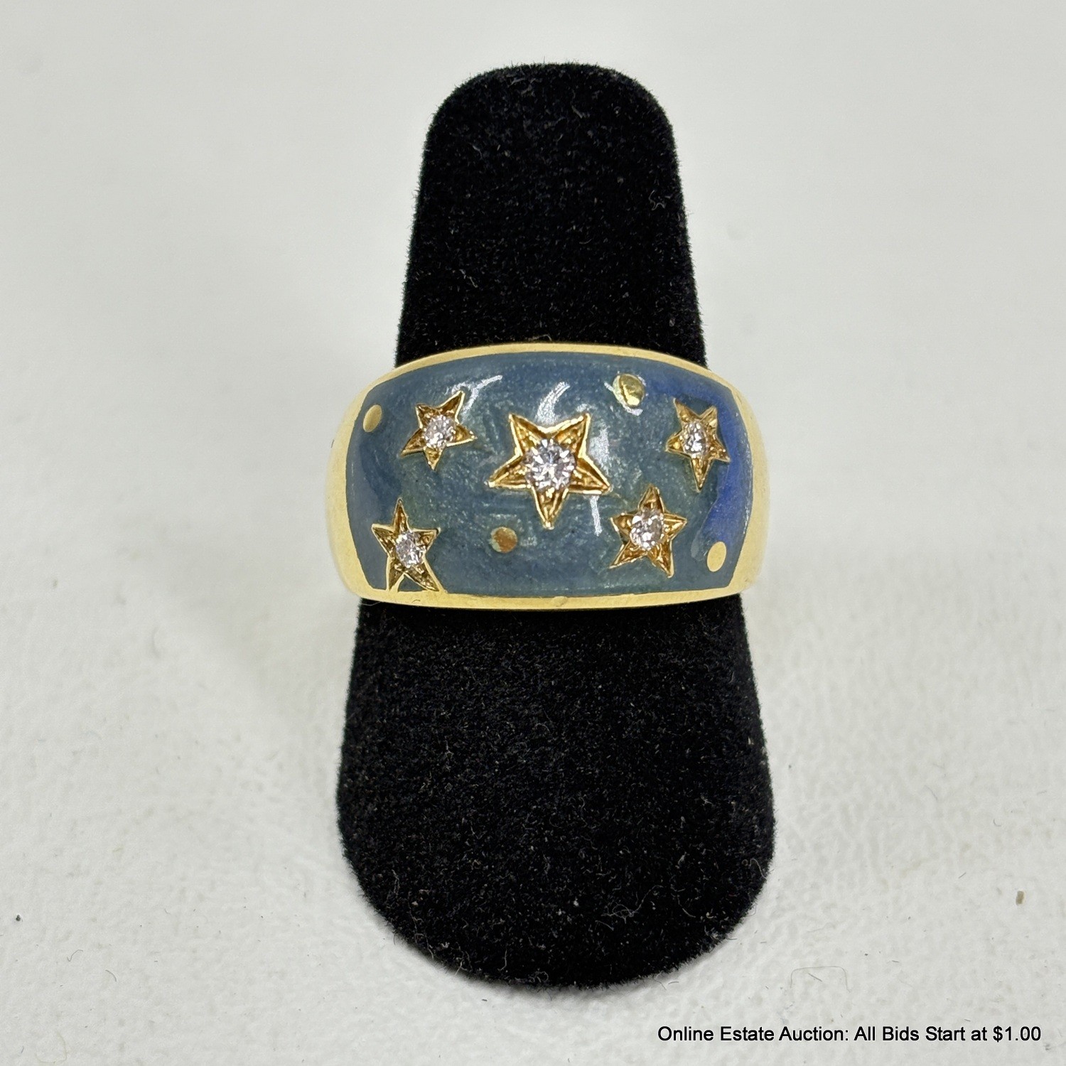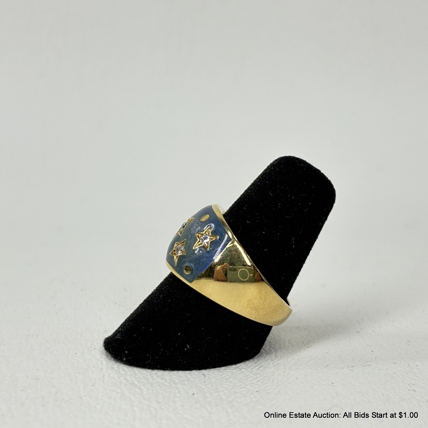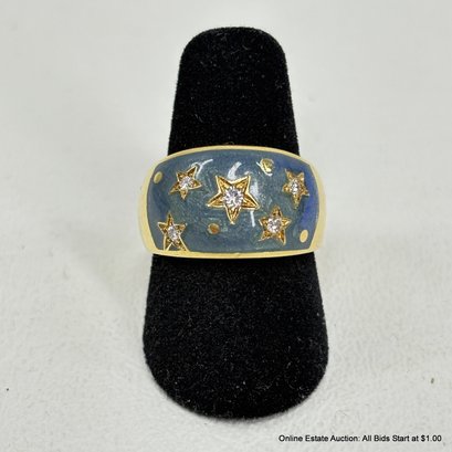 18K Gold Ring With Diamonds In An Enameled Setting 10 Grams Total Weight