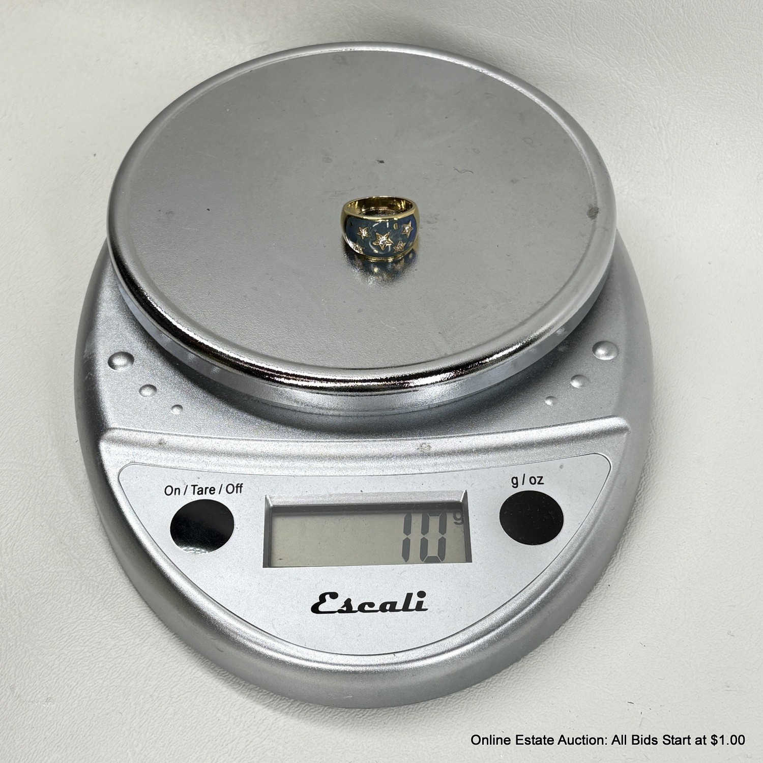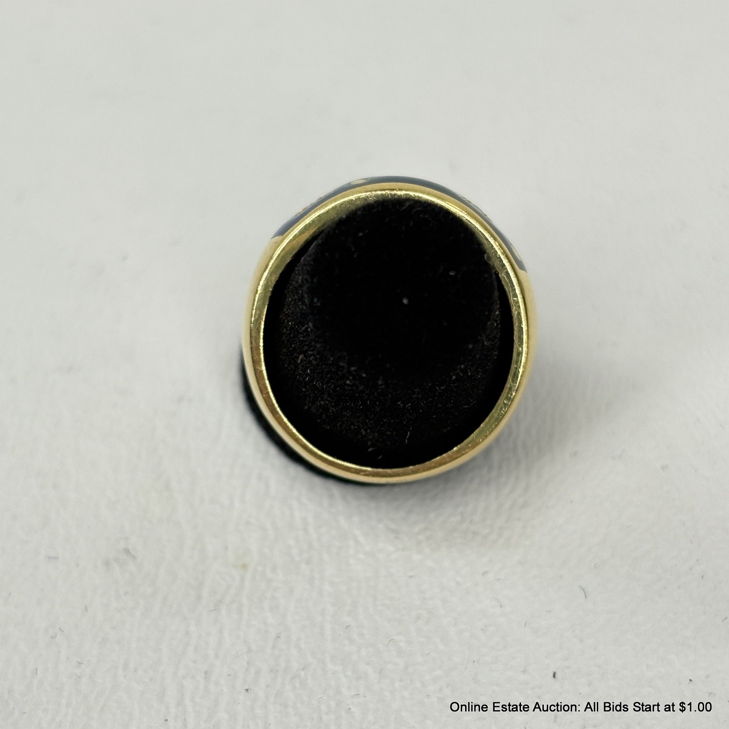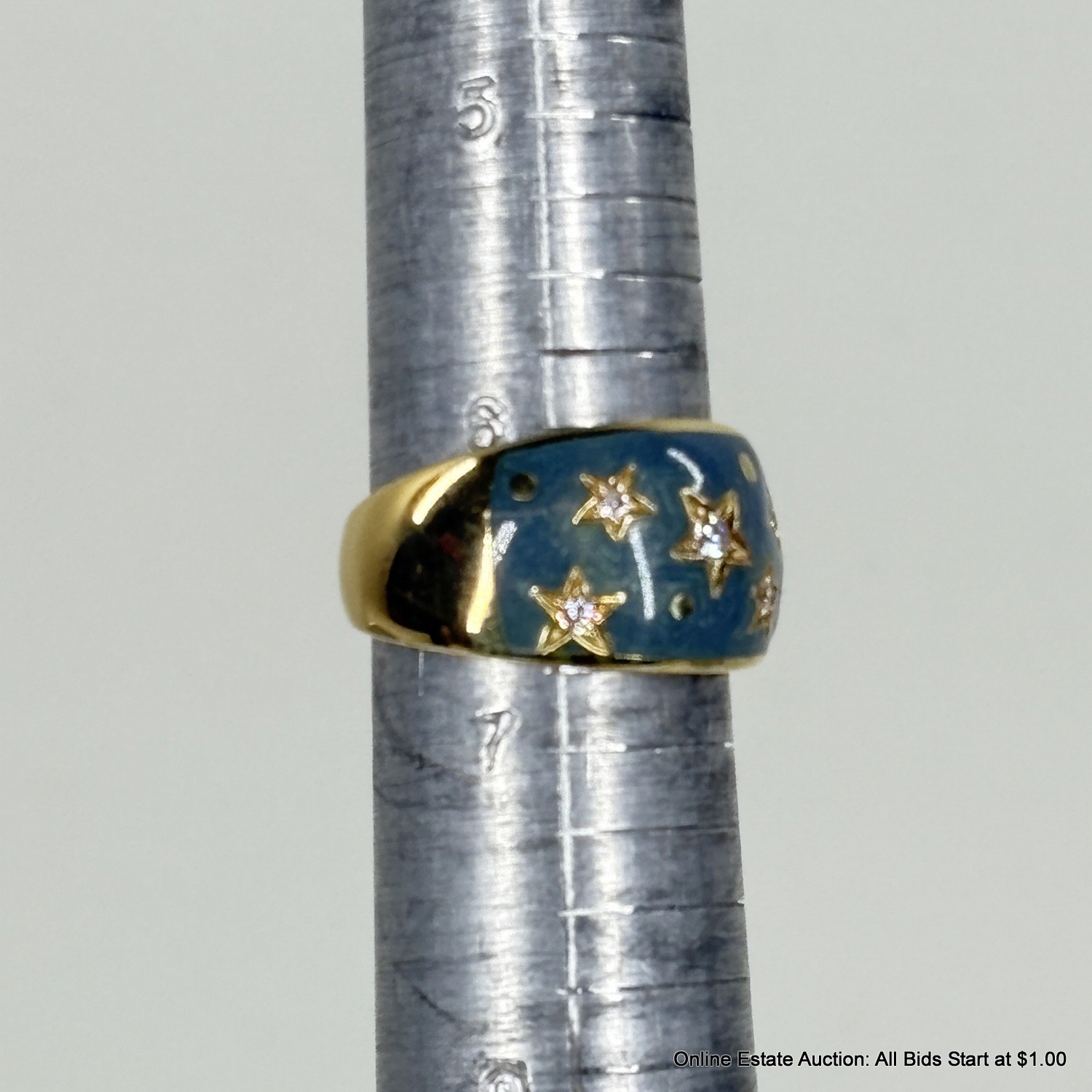 18K Gold Ring With Diamonds In An Enameled Setting 10 Grams Total Weight