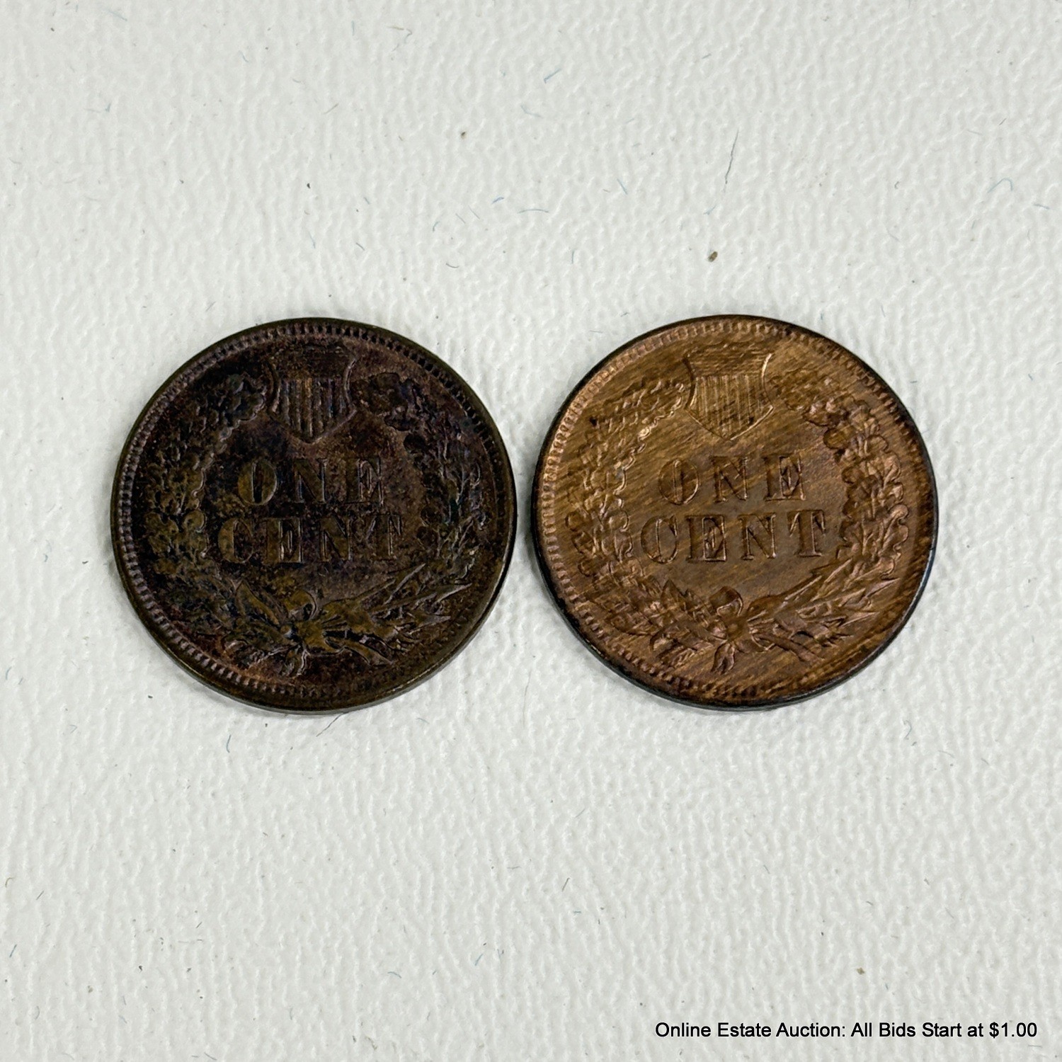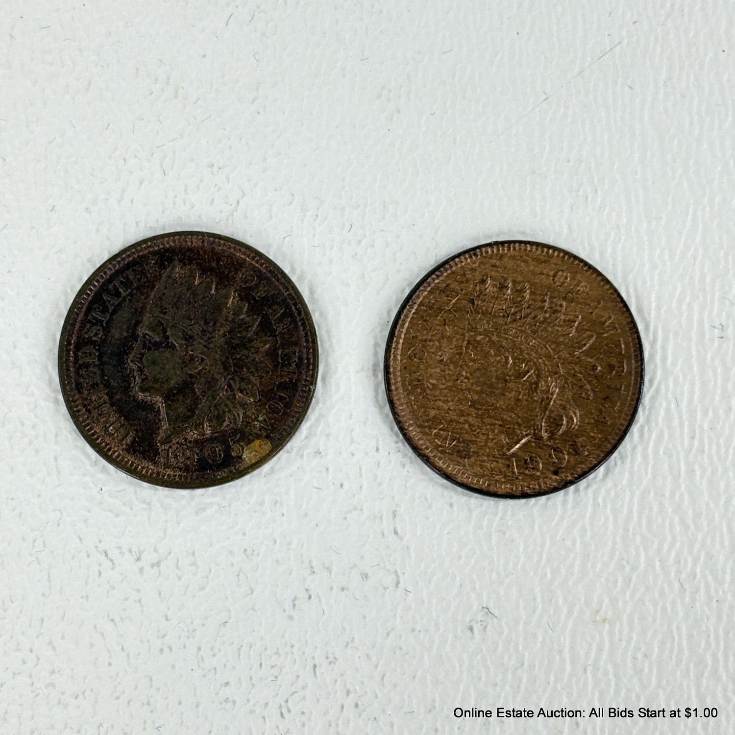 1905 and 1901 Ungraded U.S. Indian Head One Cent Coins