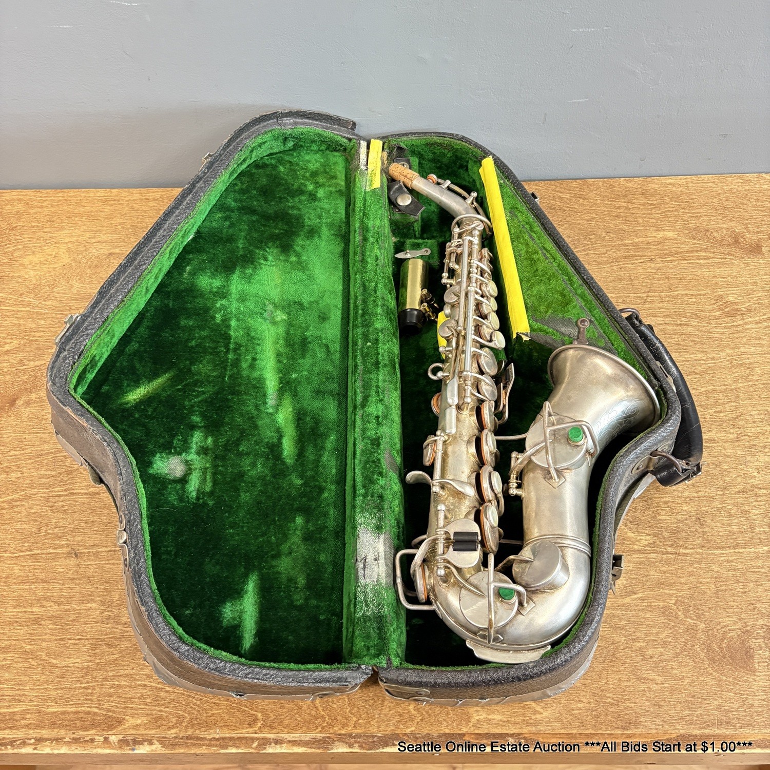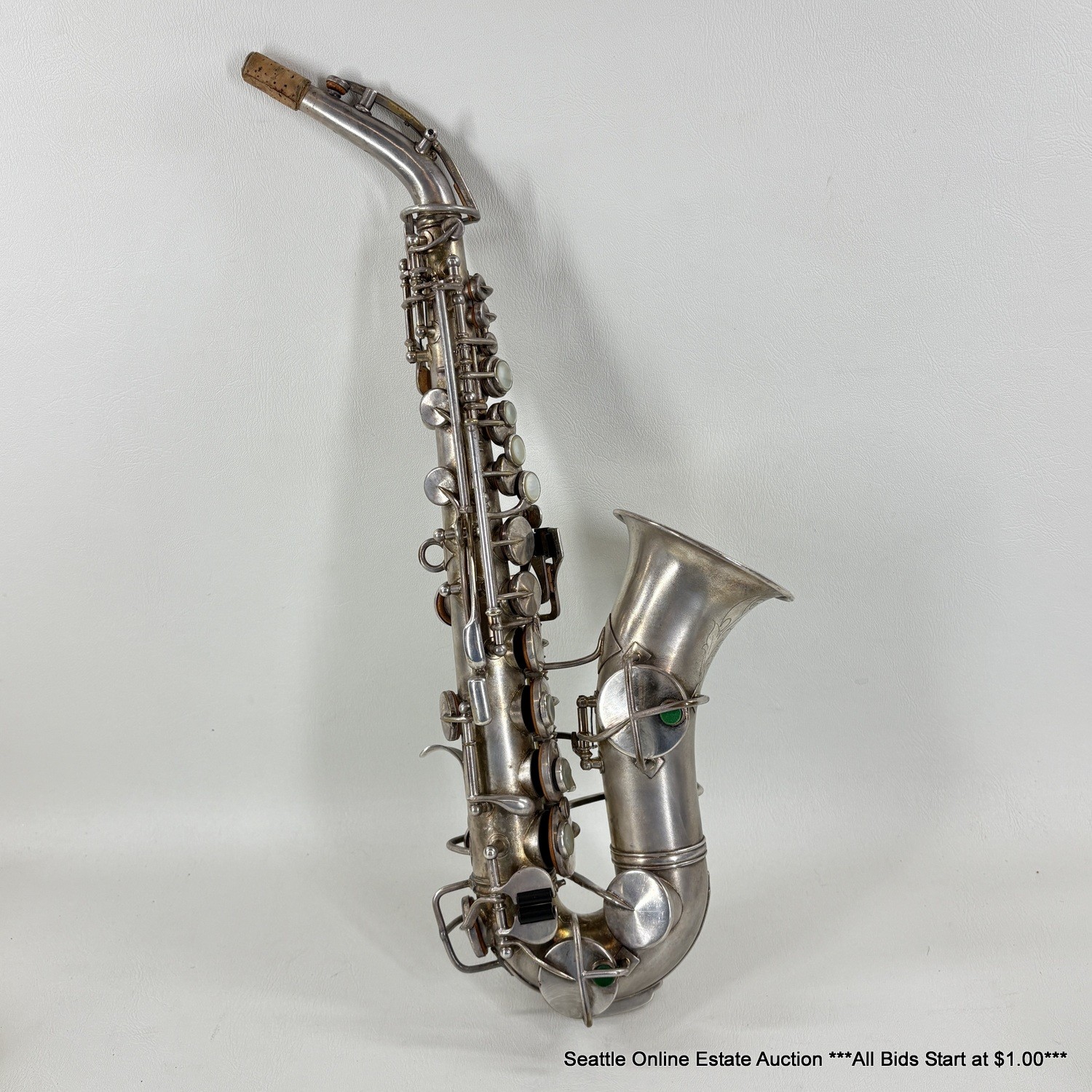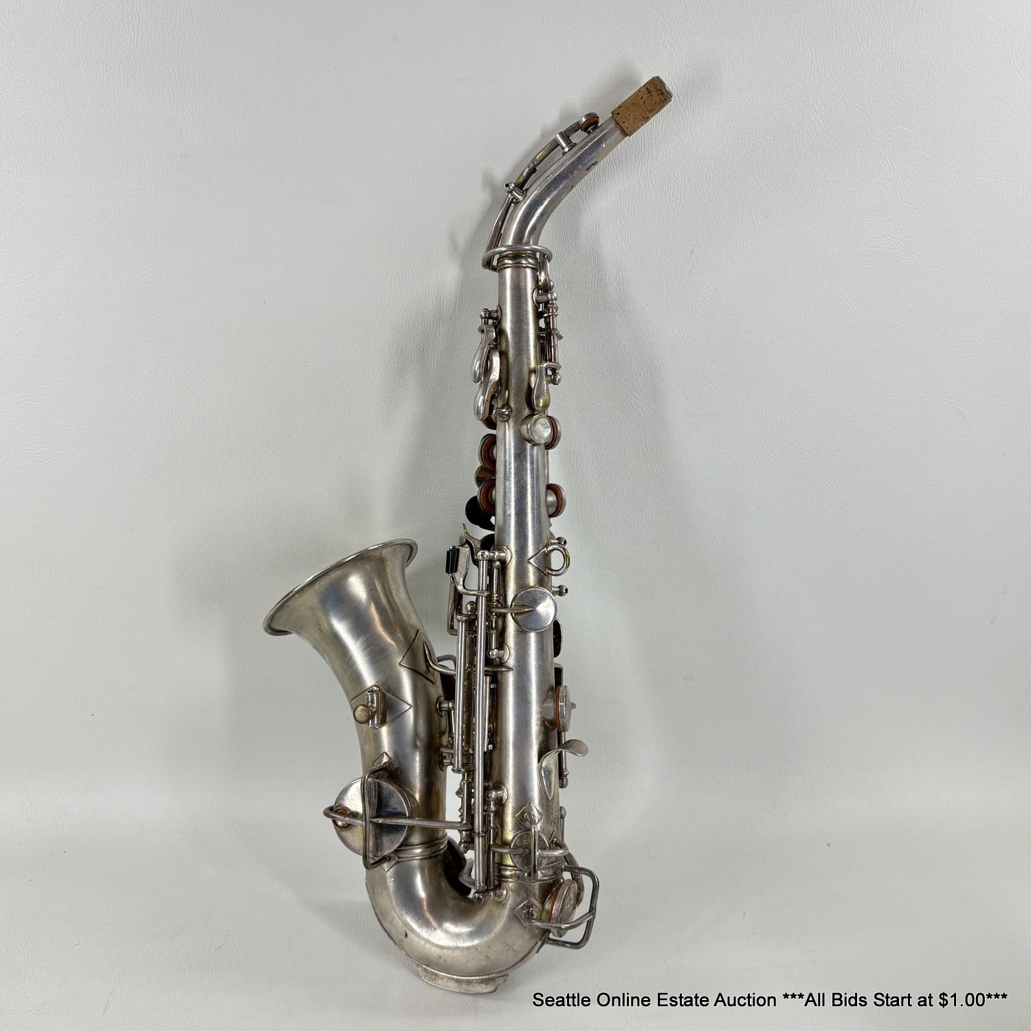 1920-21 Antique King By H.N. White C- Soprano Low Pitch Saxophone With Mother Of Pearl Keys